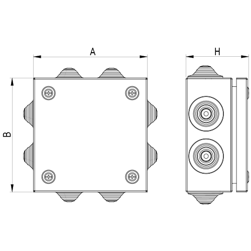 FS FireBox 150х150х80 mm, IP55, with cable glands, steel, 4p, 450V, 6A, 4mm2