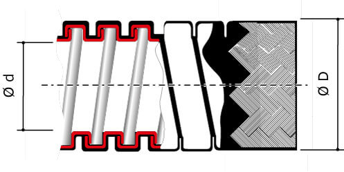 | Product type | Metal flexible conduits in vacuum PVC coating and protected by galvanized steel braid |
