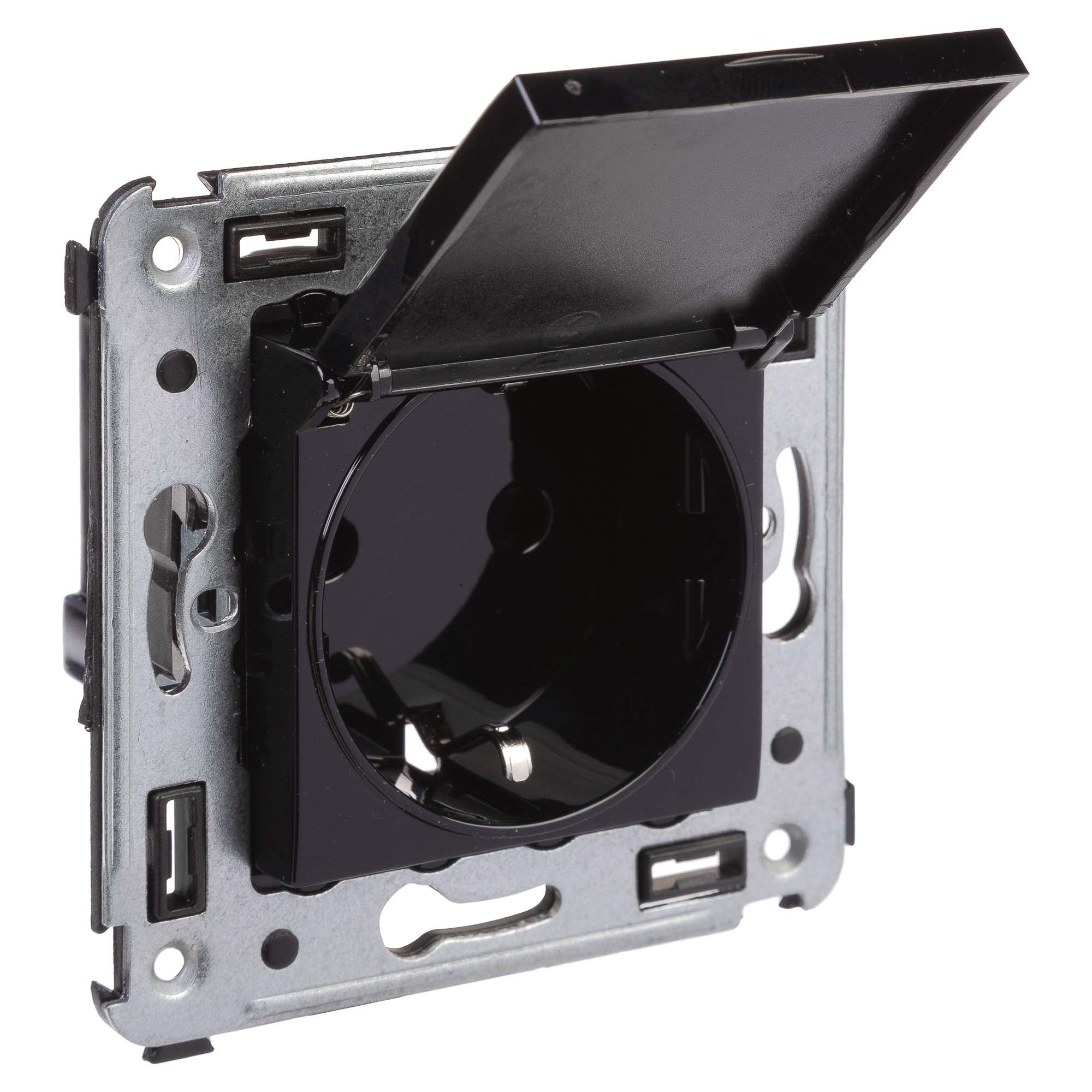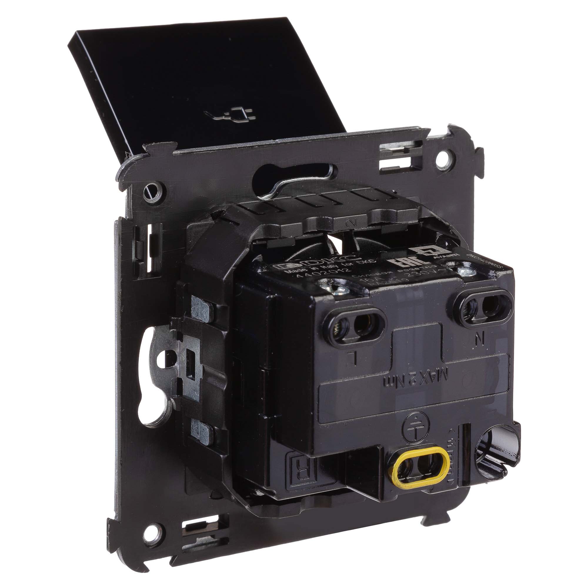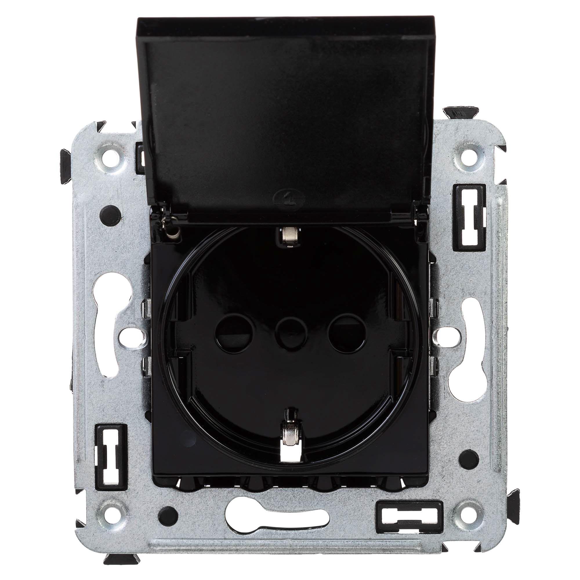 Flush mounting schuko socket with cover Avanti, 2P+E, screw terminals, 2mod., black square