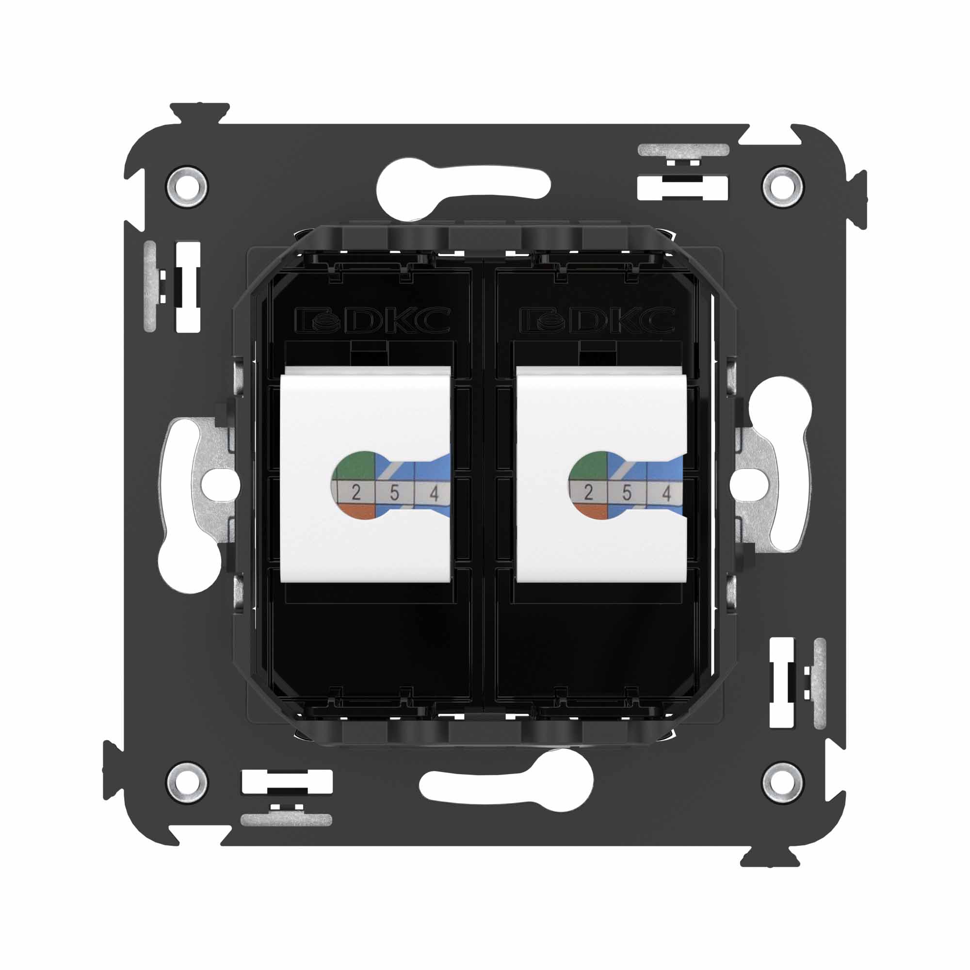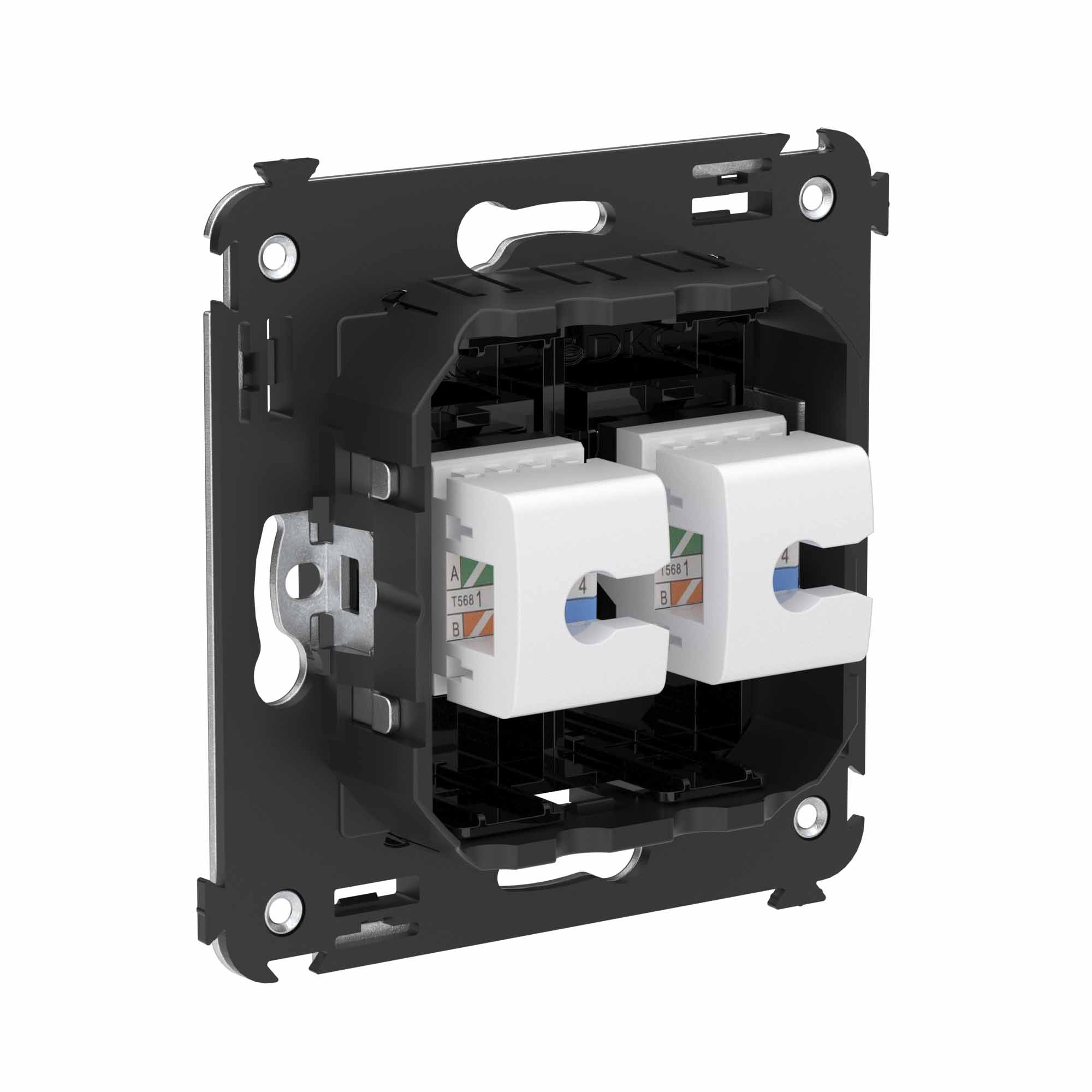 Flush mounting double RJ-45 socket without shutter Avanti category 6A UTP, black square