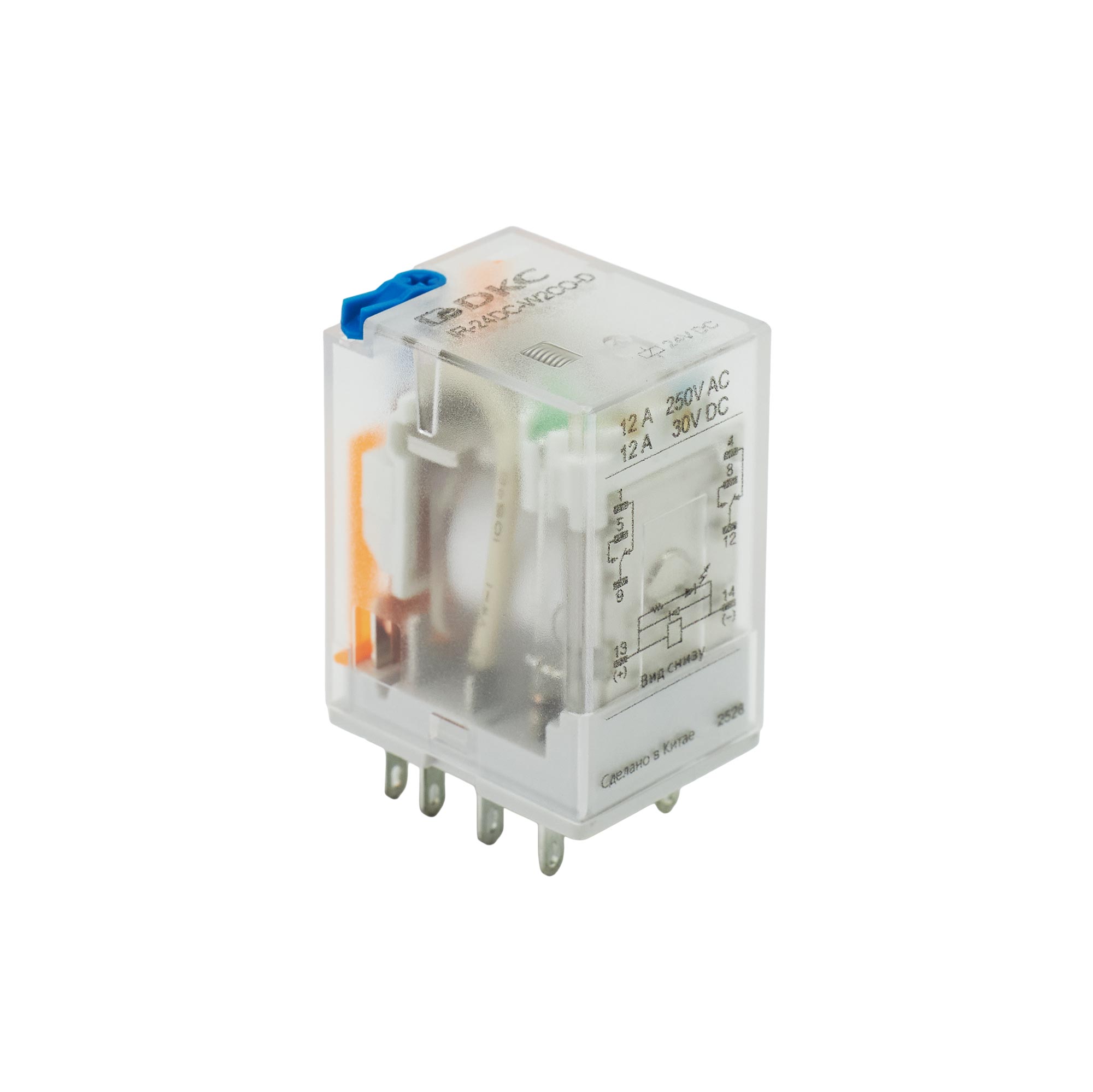 Industrial single relay, 2CO, 12A, LED+Diode+Test button, 24V DC