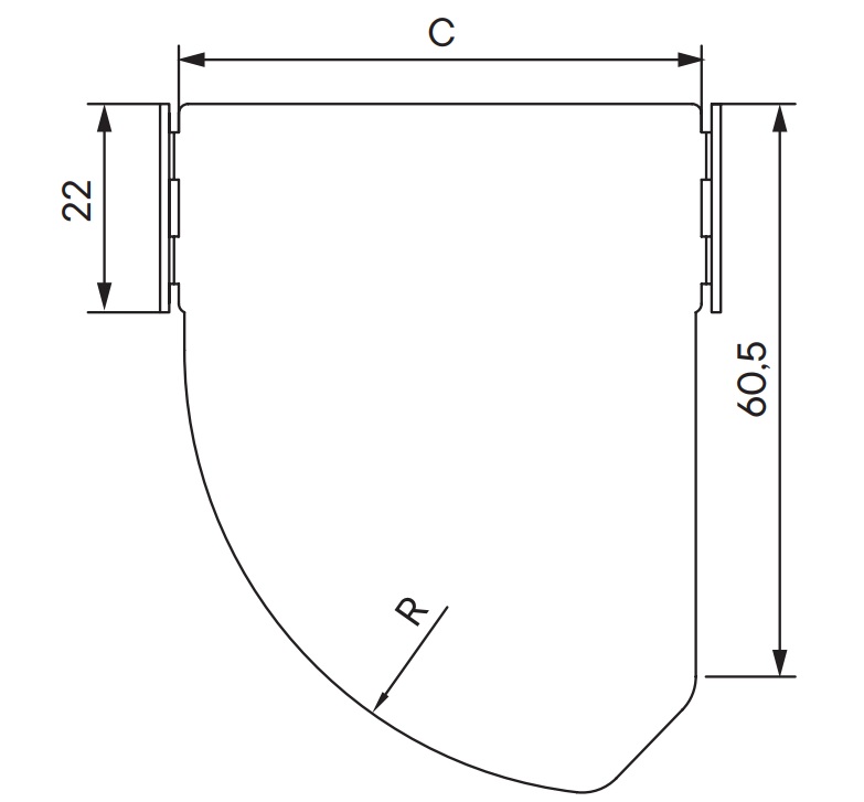 Cover for CPO Variable Angel Elbow 0-45° 150x35, included with fasteners