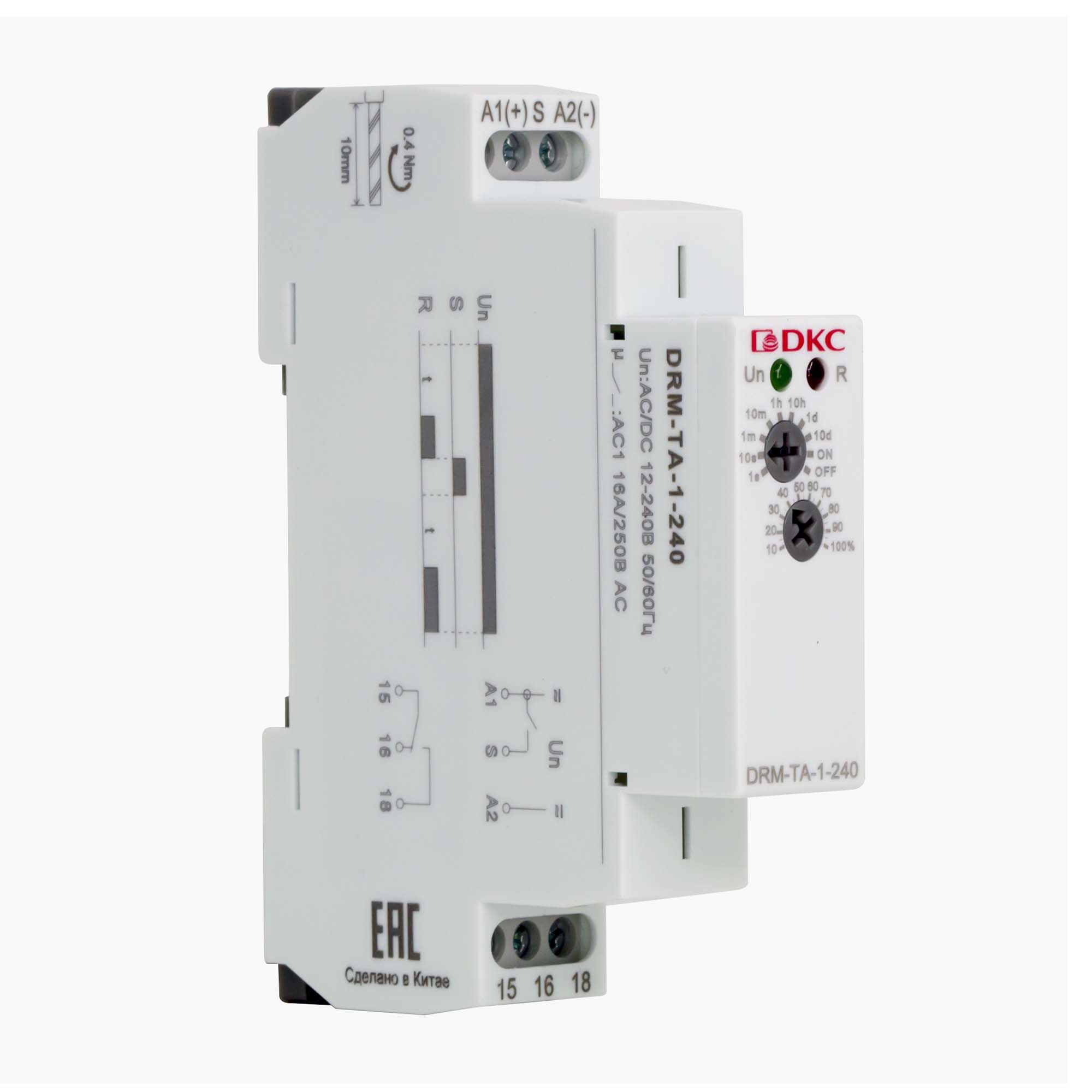 Time relay, delay on, contact configuration 1CO, AC/DC 12-240V