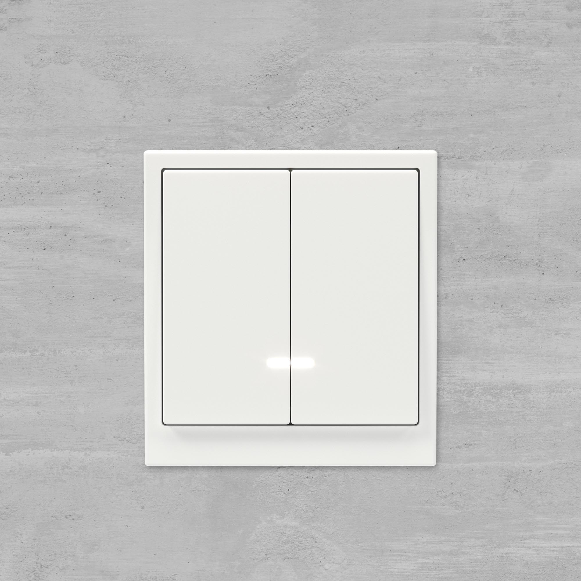 Flush mounting double one way switch with backlight, "KANT", 16A, 2 mod., "White magnolia"