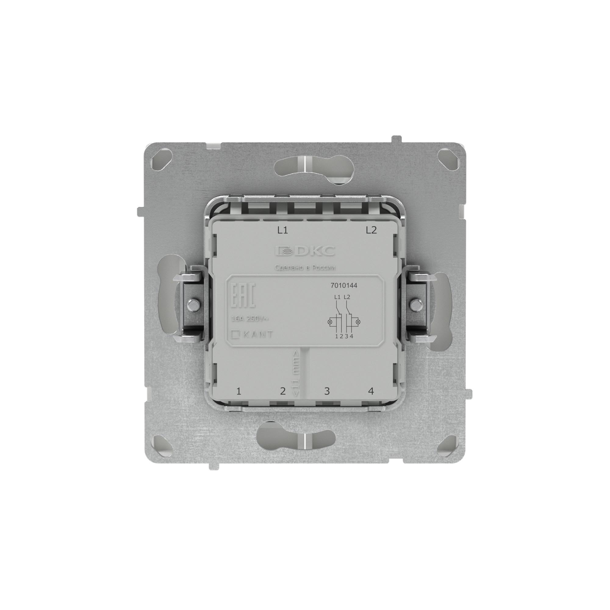 Flush mounting one way switch with backlight, "KANT", 16A, 2 mod., "White sand"