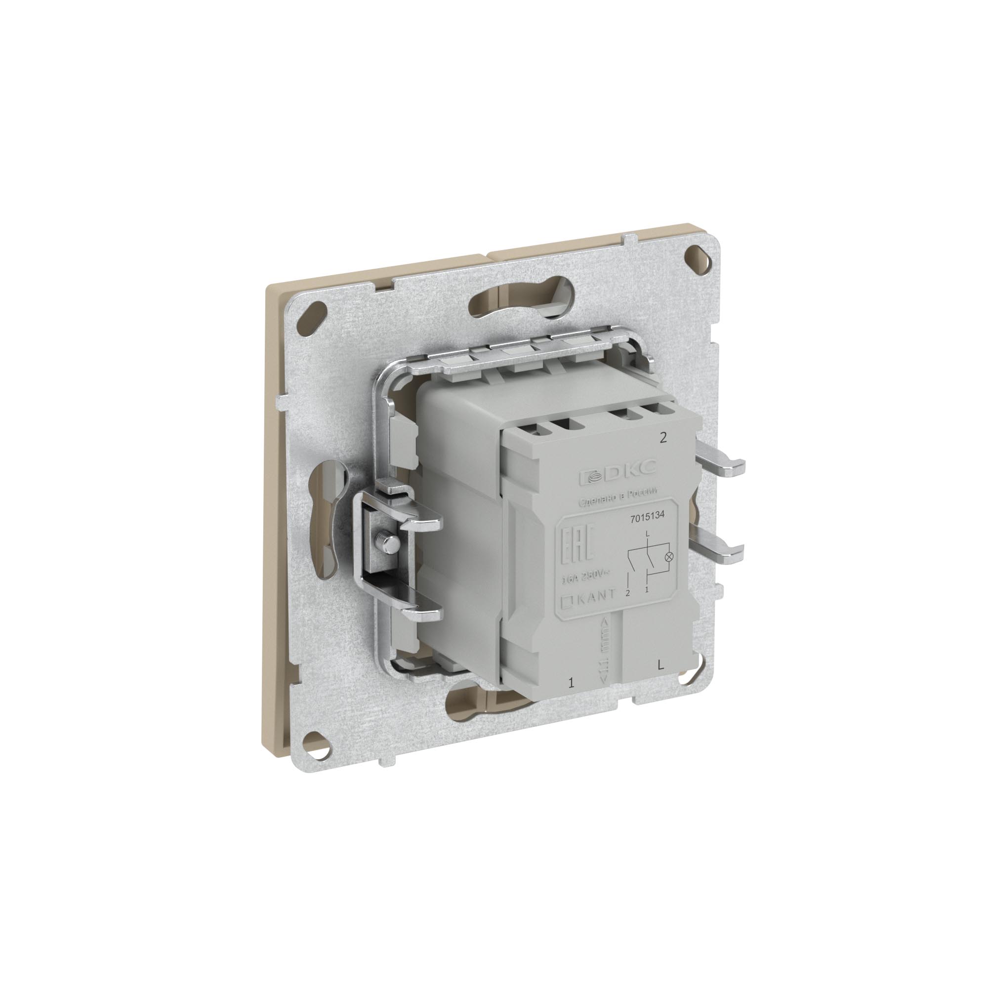 Flush mounting double one way switch with backlight, "KANT", 16A, 2 mod., "Vanilla marzipan"