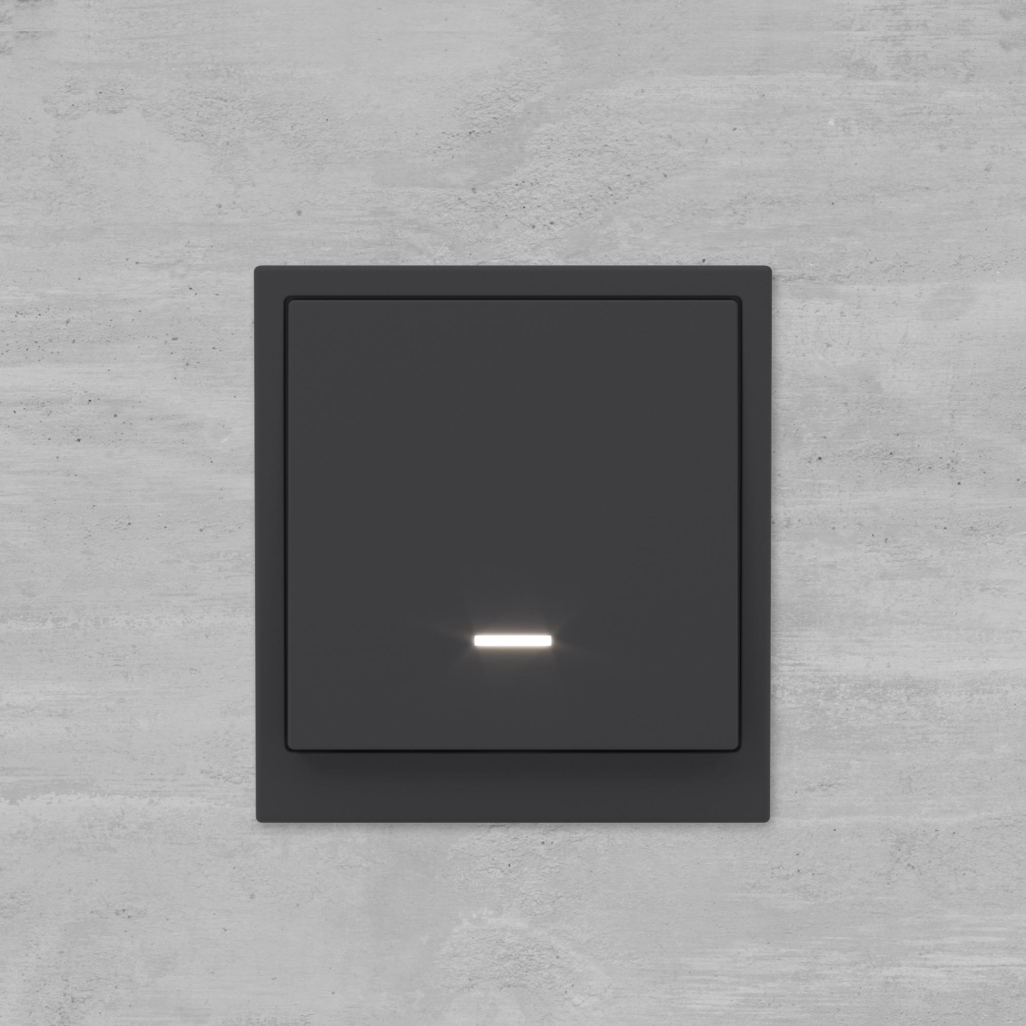 Flush mounting one way switch with backlight, "KANT", 16A, 2 mod., "Black coal"