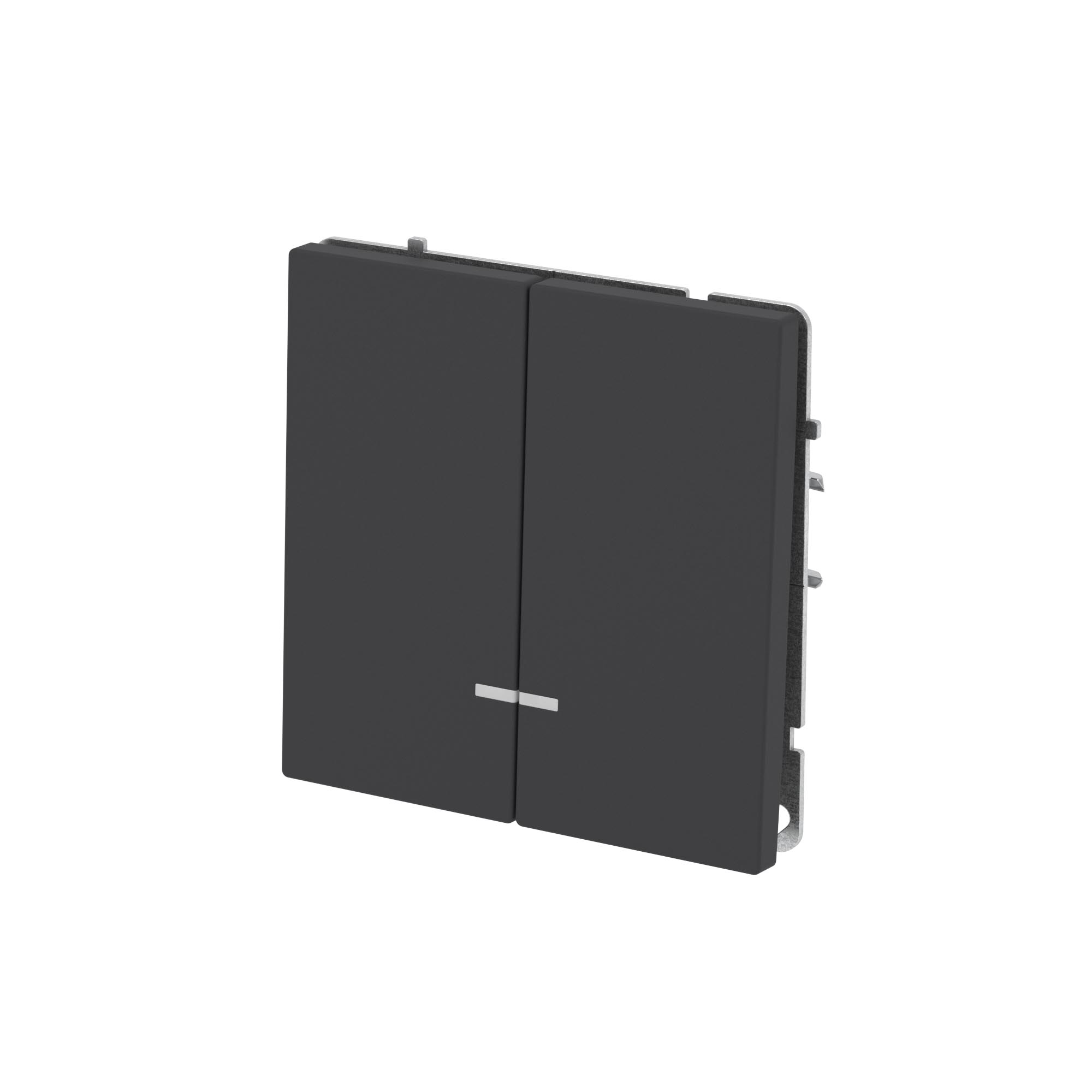Flush mounting double one way switch with backlight, "KANT", 16A, 2 mod., "Black coal"