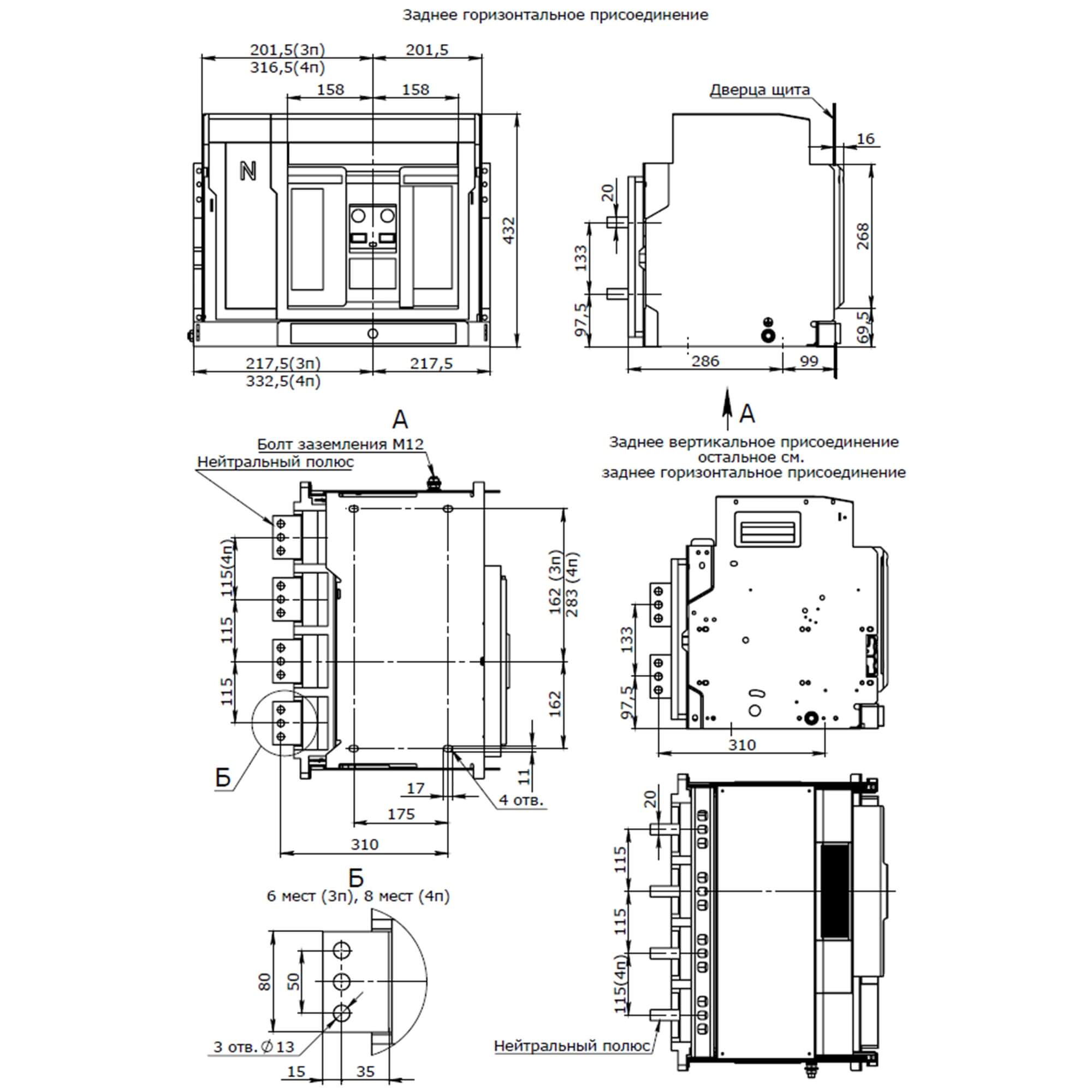 | Position of connection for main current circuit | Back connection |