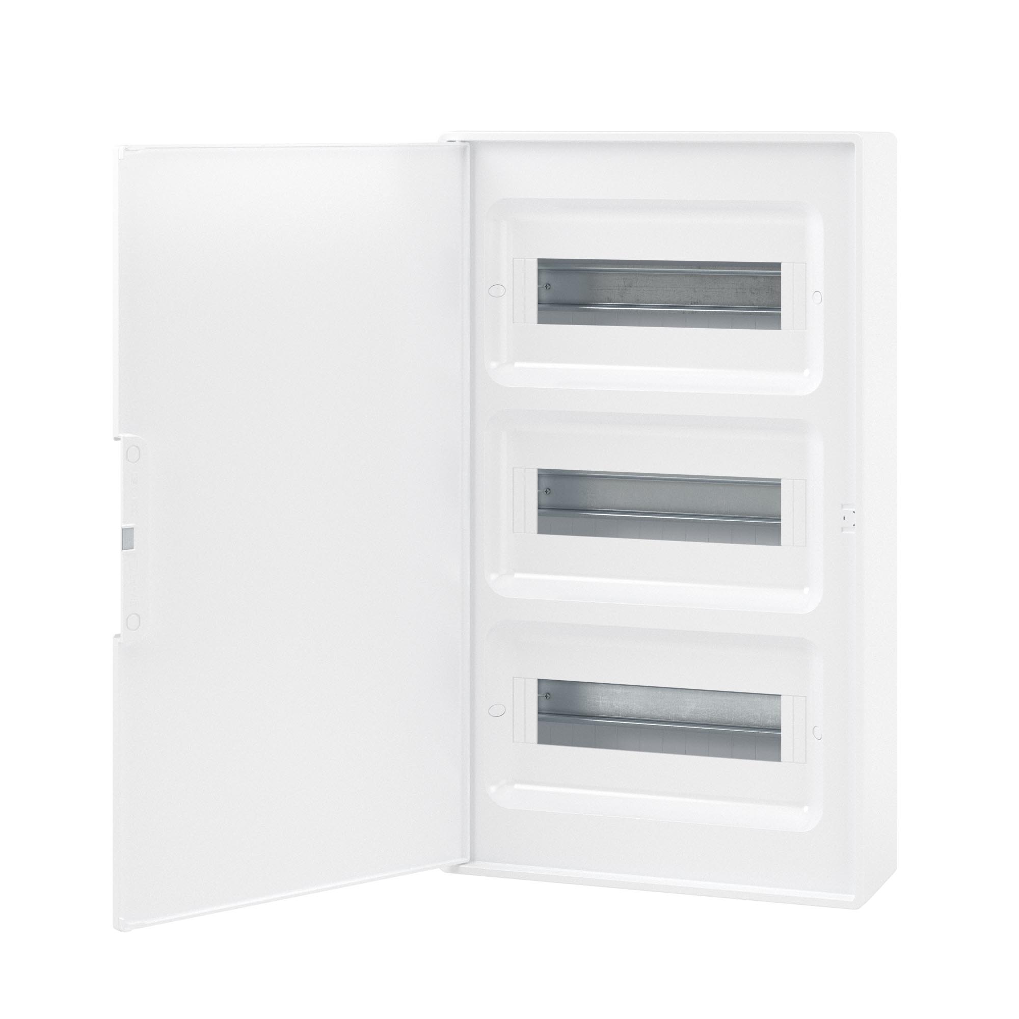 Plastic shield 36 mod wall mounted, white, with white door, with 2 PEN busbar 8 holes, and 2 PEN busbar 10 holes