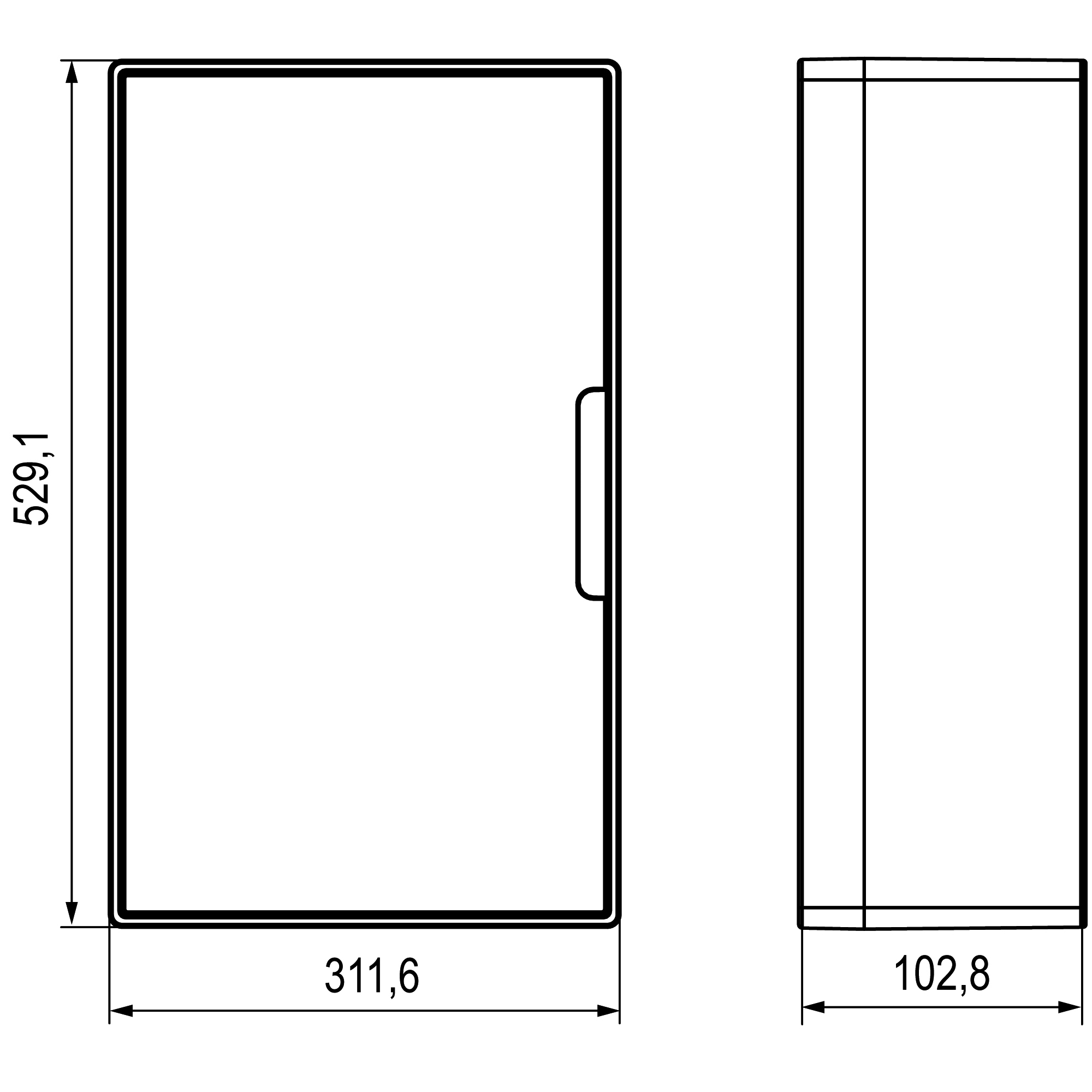 | Height, mm | 529.1 |