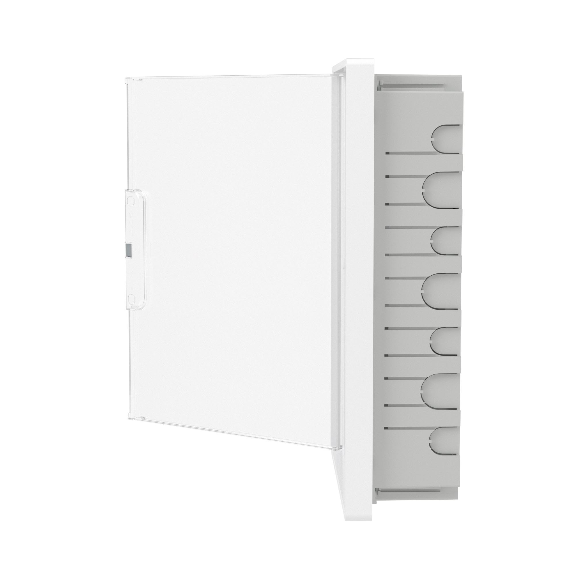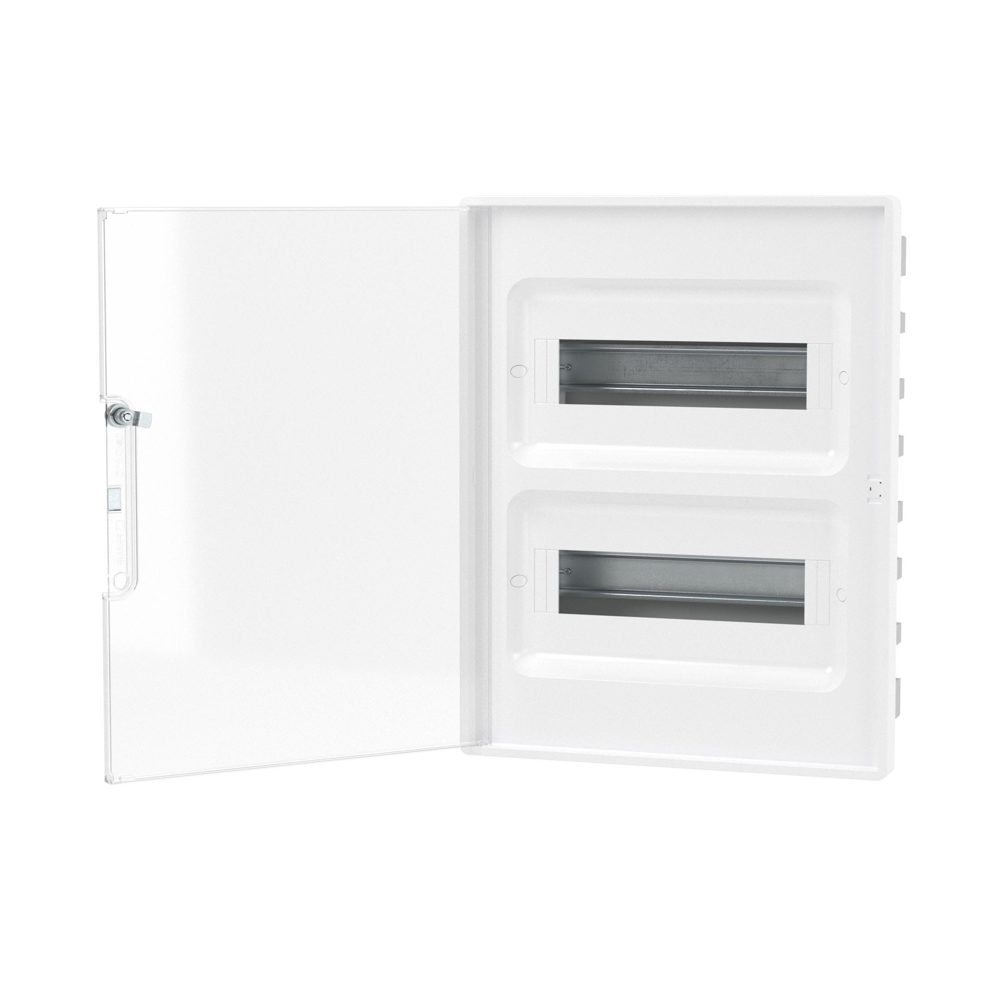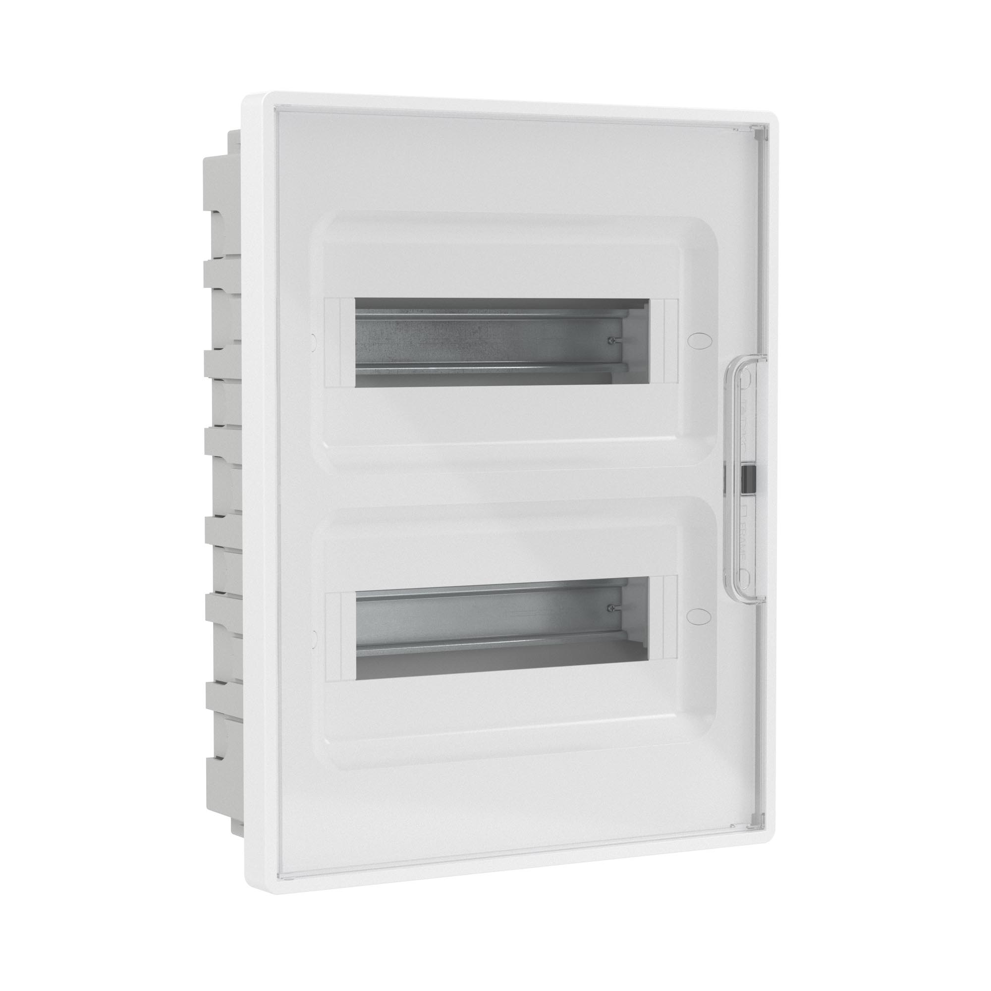 Plastic shield 24 modules, built-in, for hollow walls FRAME, white, with transparent door, with 4 PEN busbar 8+6 holes
