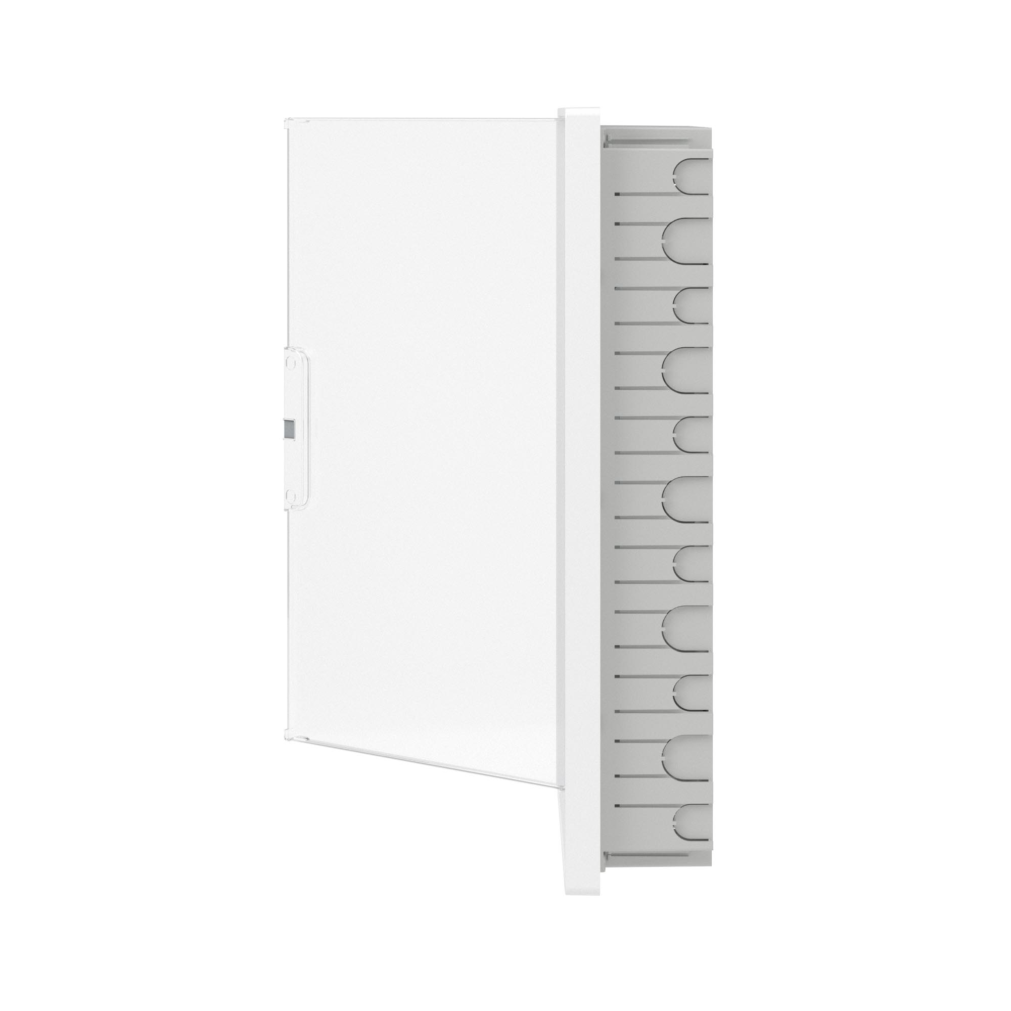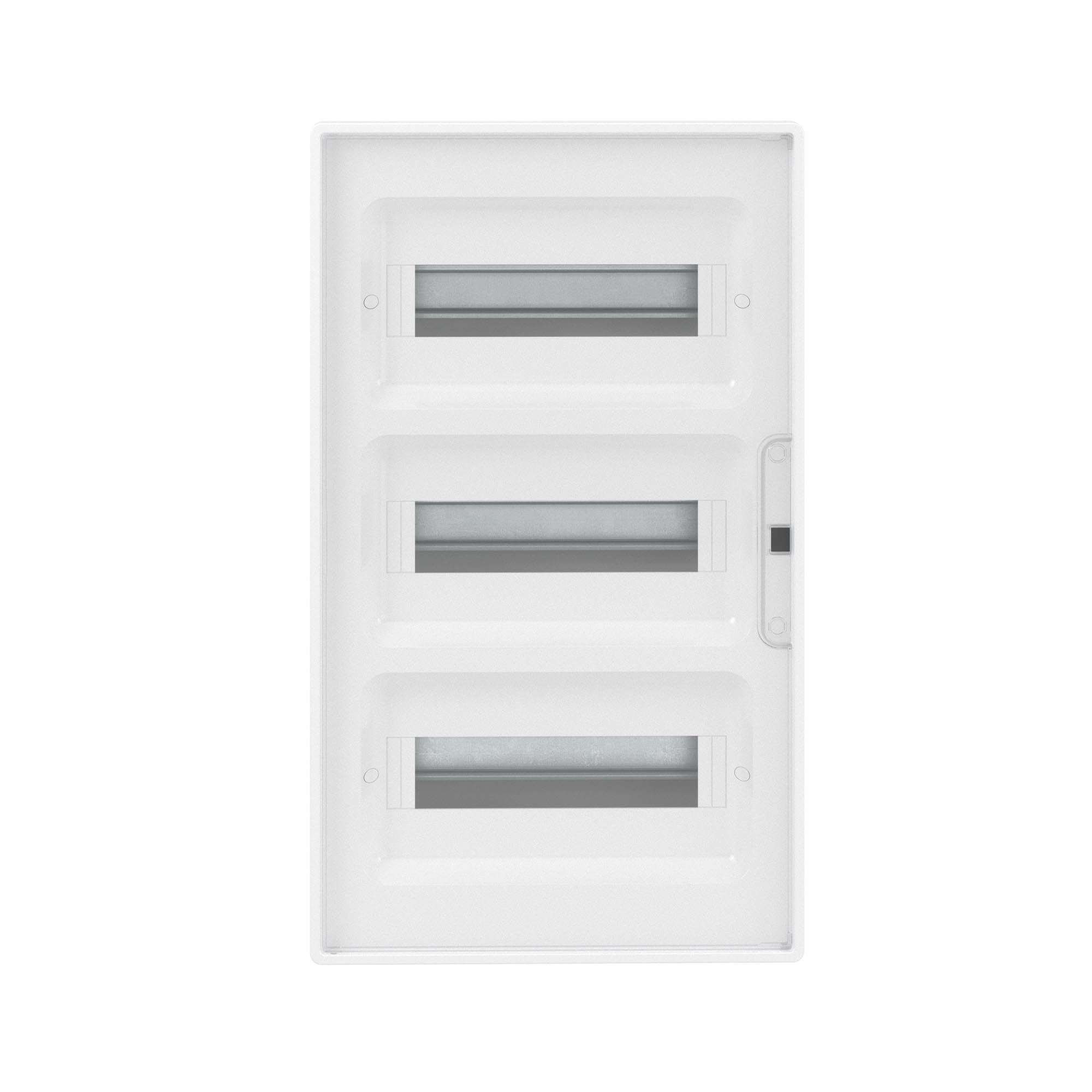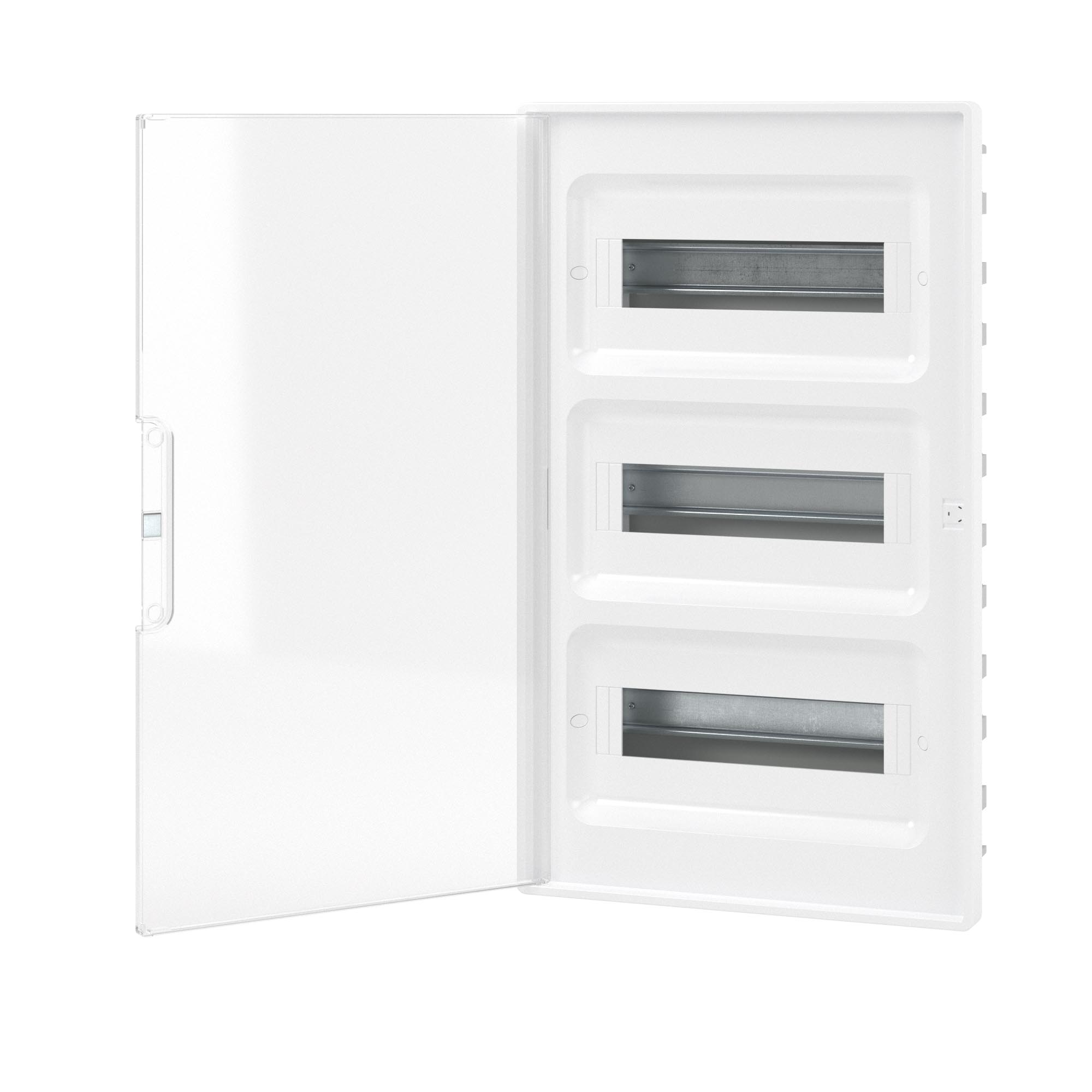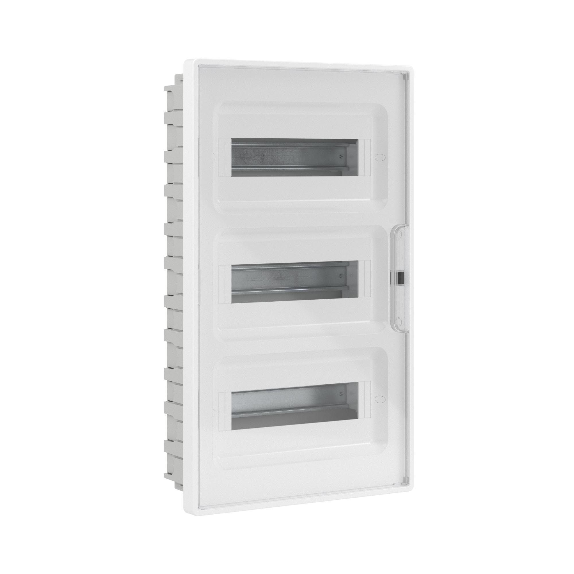 Plastic shield 36 modules, built-in, for hollow walls FRAME, white, with transparent door, with 4 PEN busbar 8+10 holes