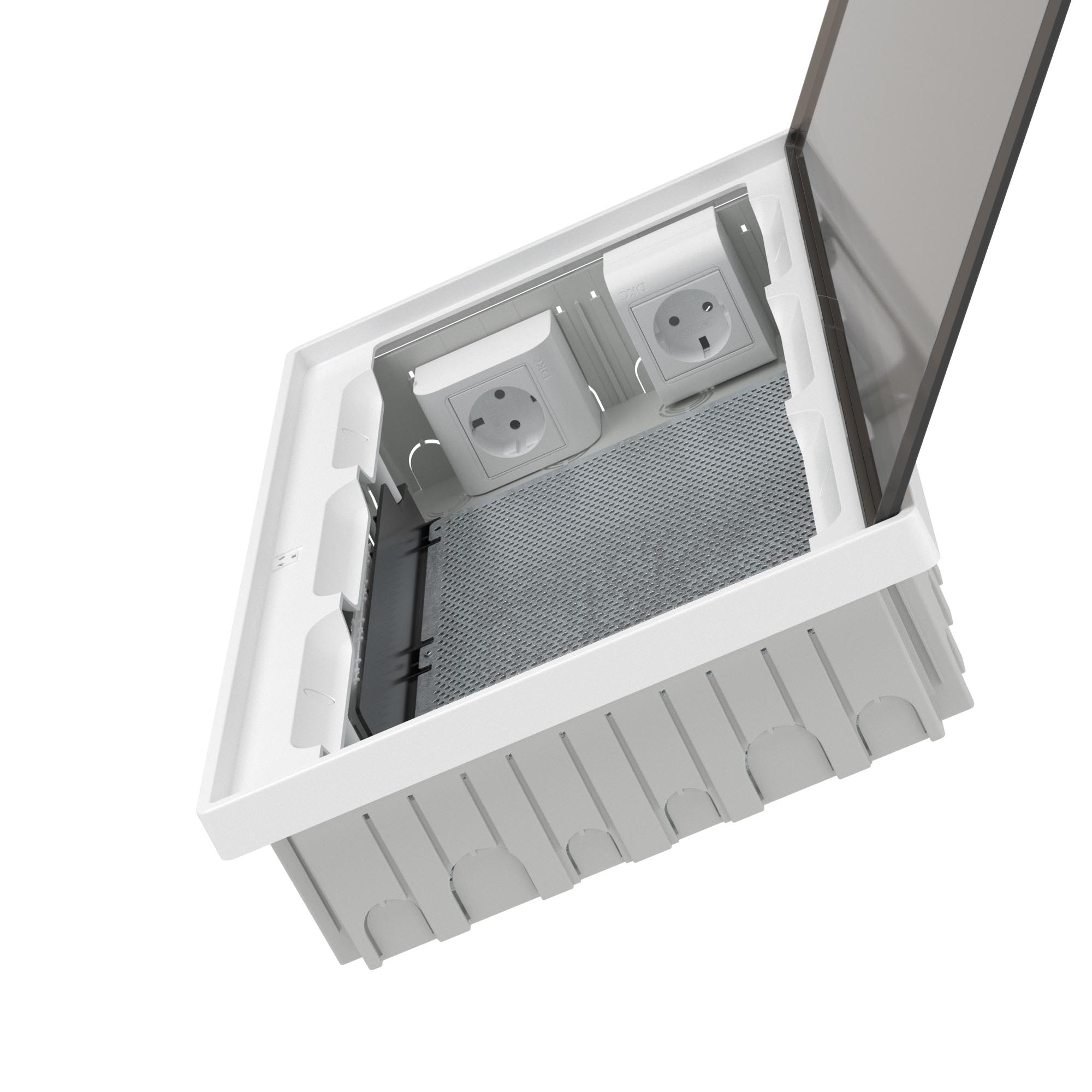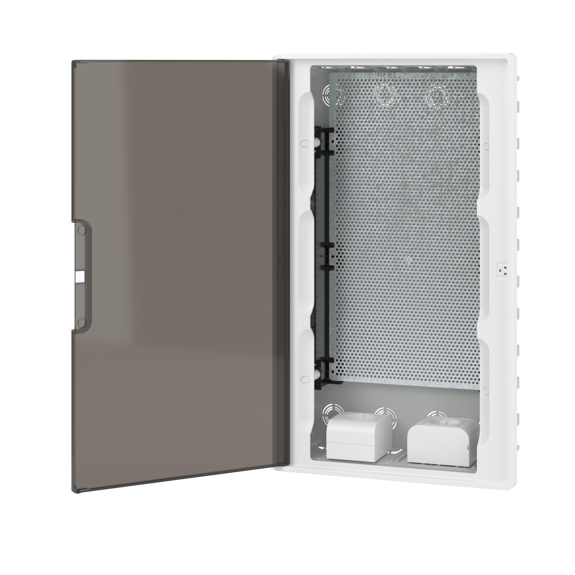 Plastic shield 36 modules, low-current, built-in, for hollow walls FRAME, white, with tinted door