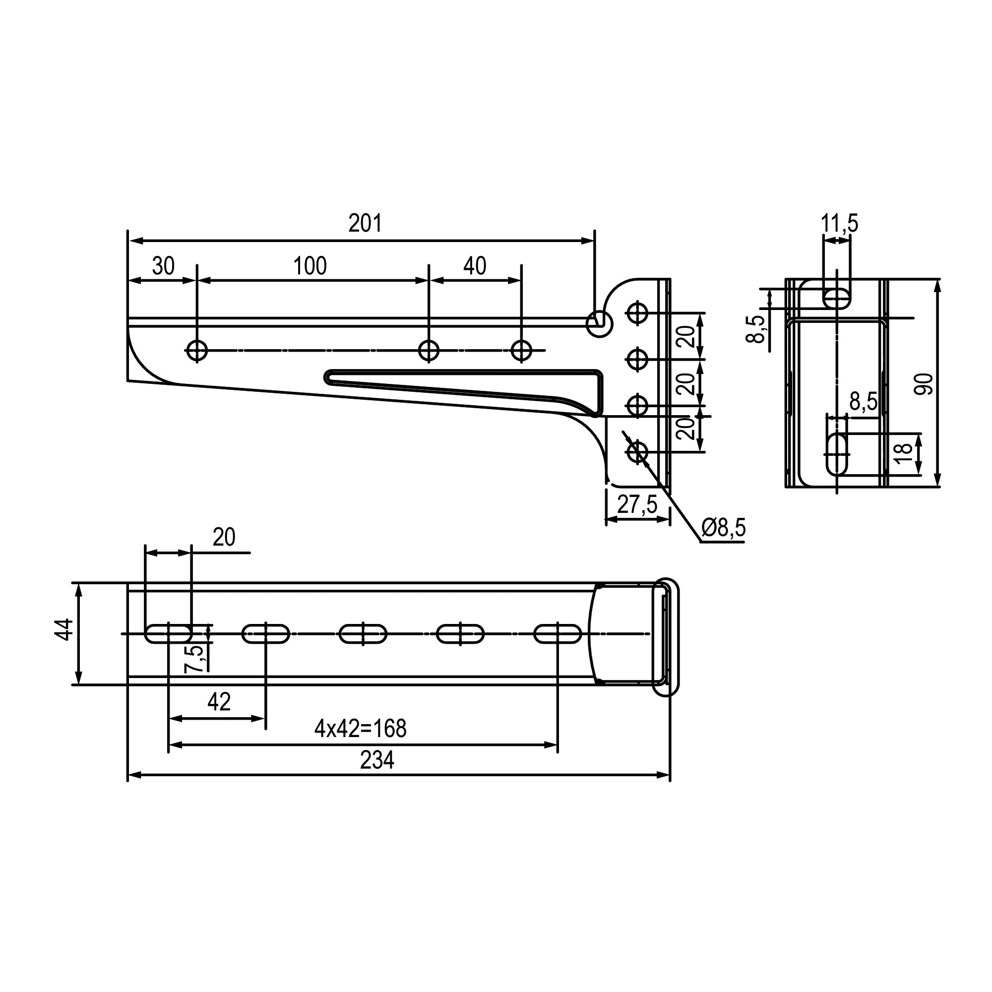 Length, mm 234