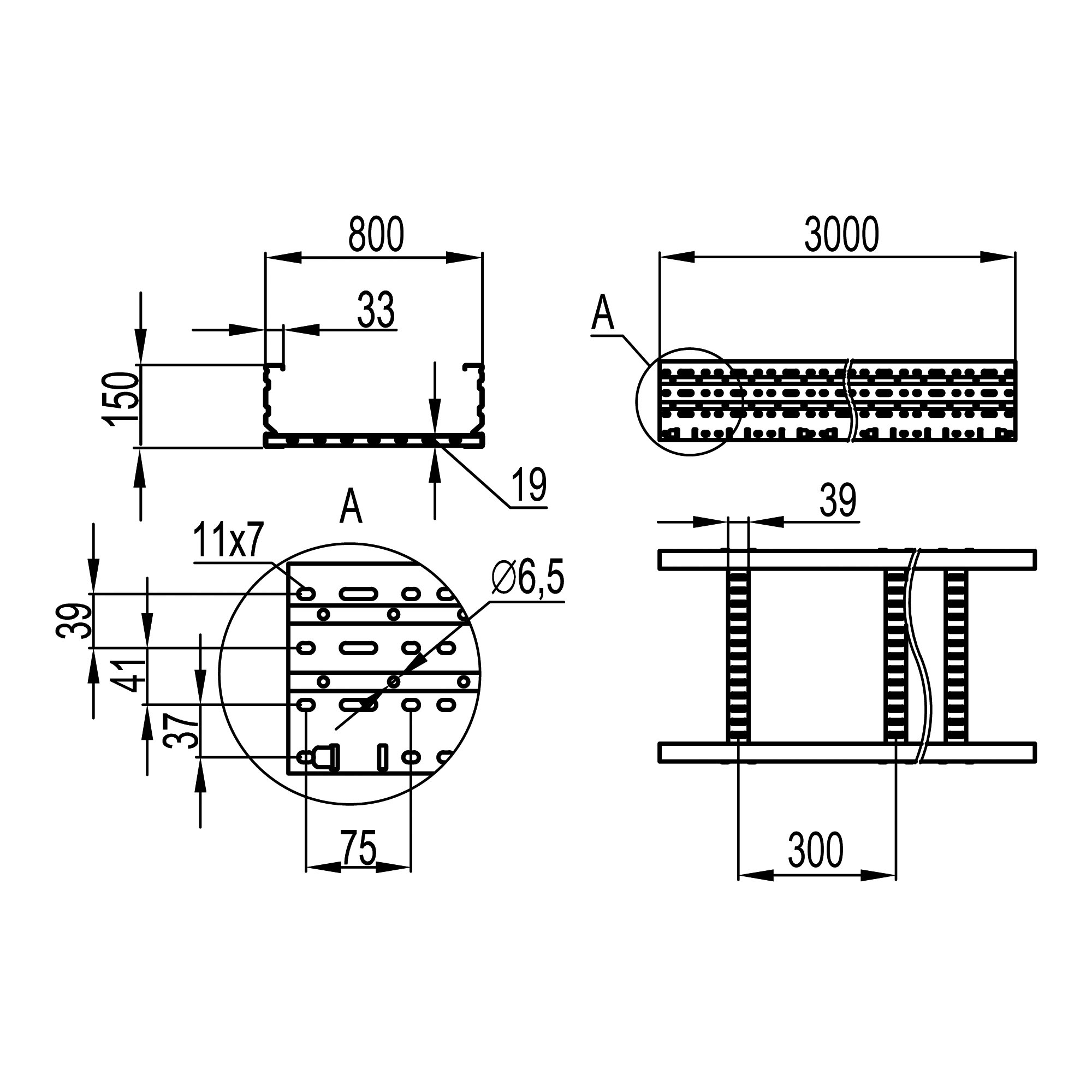 Cable ladder 150х800, side rail thickness 2 mm,L 3 m zinc lamellar coating