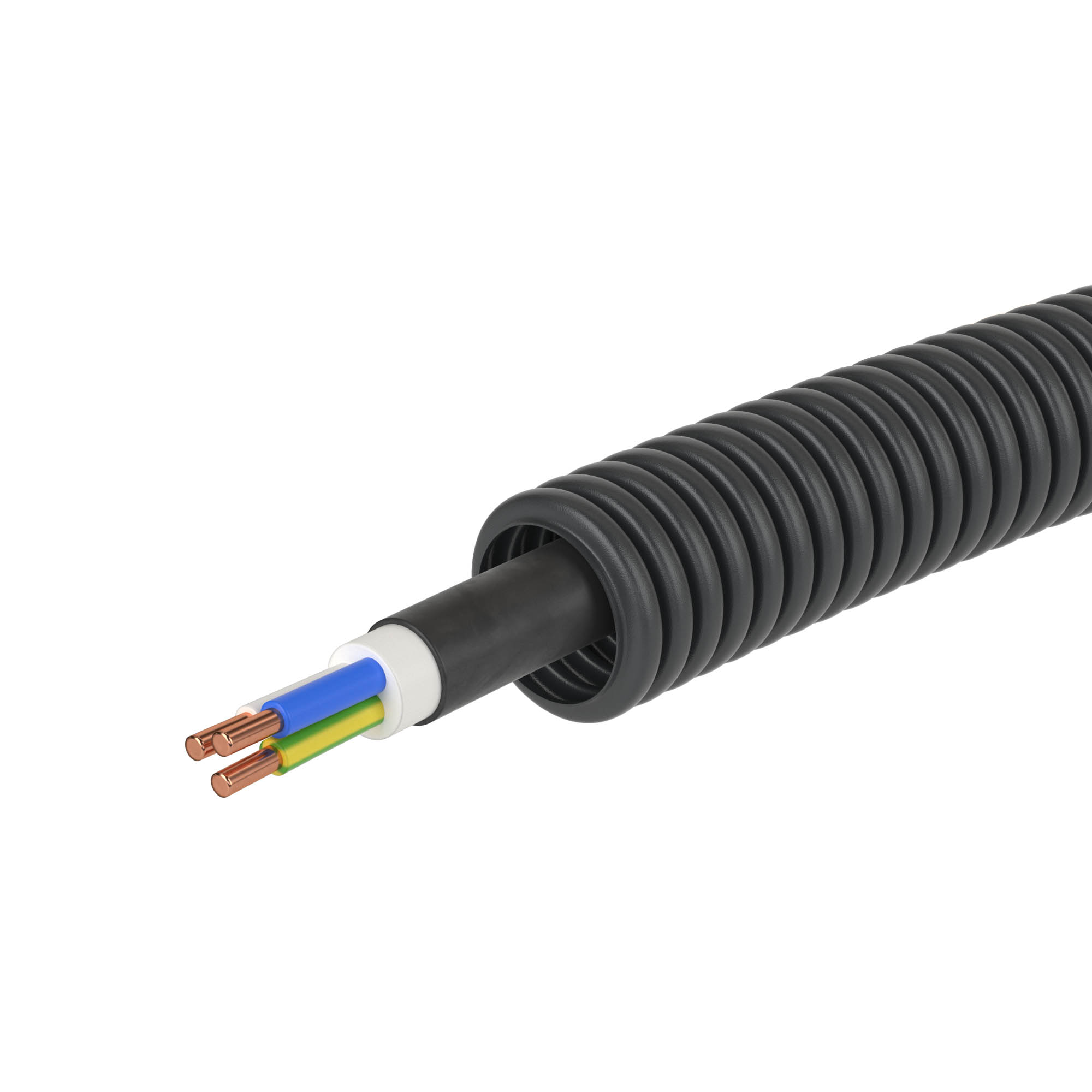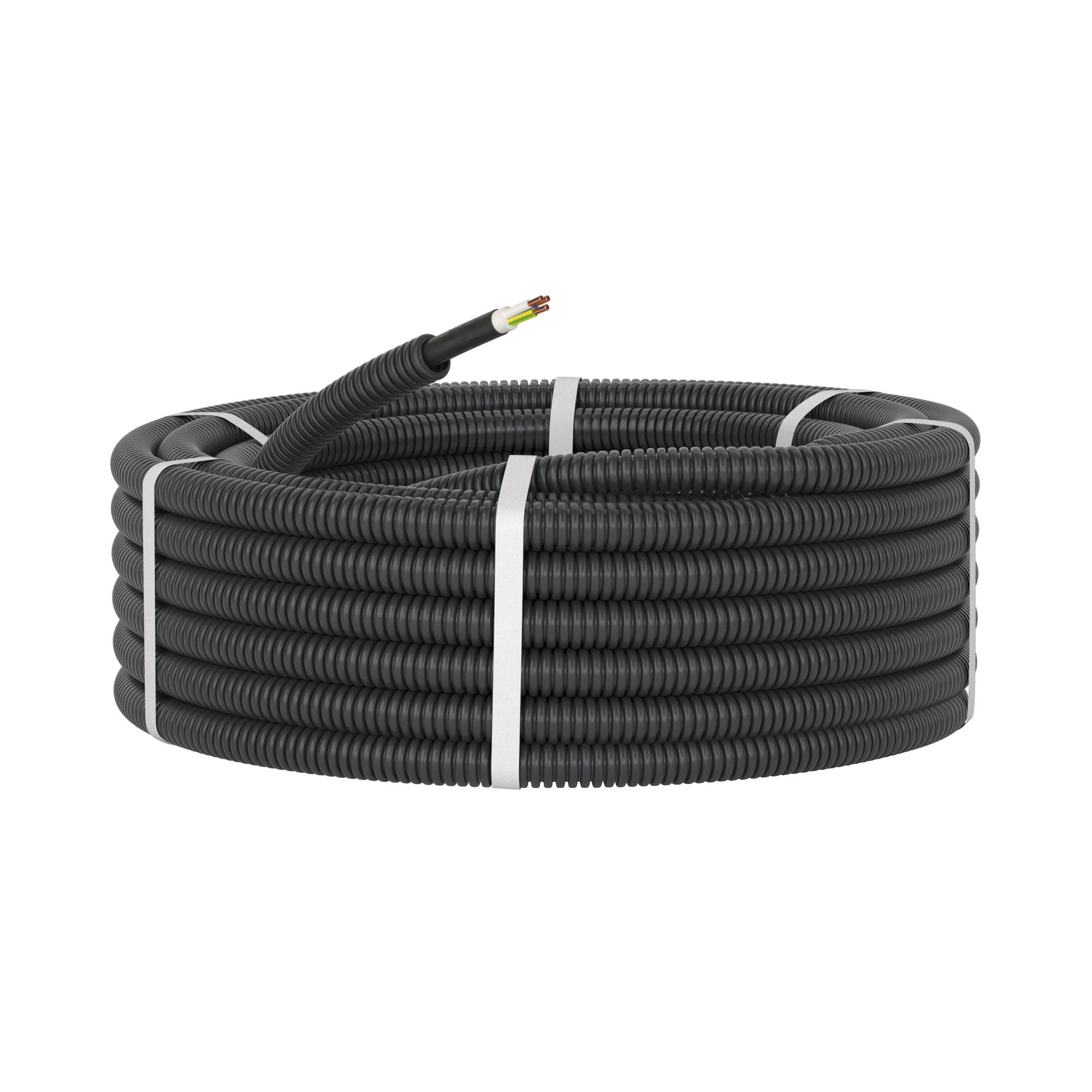 Pre-wired tube HDPE flexible corrugated, Ø 16 mm, black color, with cable Prysmian LS PVC 2C+E 2,5 mm², 25 m