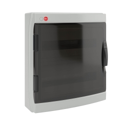 Настенный модульный щиток с прозрачной затемненной дверцей. Предназначен для монтажа в жилых и административных помещениях для установки автоматических выключателей любых производителей: таймеров, устройств защитного отключения и управления освещением и т.д. В комплект поставки входят: клеммные блоки 2 x (11x16мм2 + 11x24мм2), ручка на дверце, оцинкованная DIN-рейка, заглушки для пустых модулей, заглушки на пазы для крепления к стене, сборочные винты. Степень пыле- и влагозащиты IP 65. Ударопрочность корпуса IK09. Количество модулей - 36. Параметры щитка: ширина - 432 мм, высота - 464 мм, глубина - 160 мм. Материал - термостойкий пластик. Цвет - серый..
