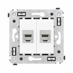 Компьютерная розетка RJ-45 без шторки в стену, кат.6A двойная экранированная, Avanti, белое облако
