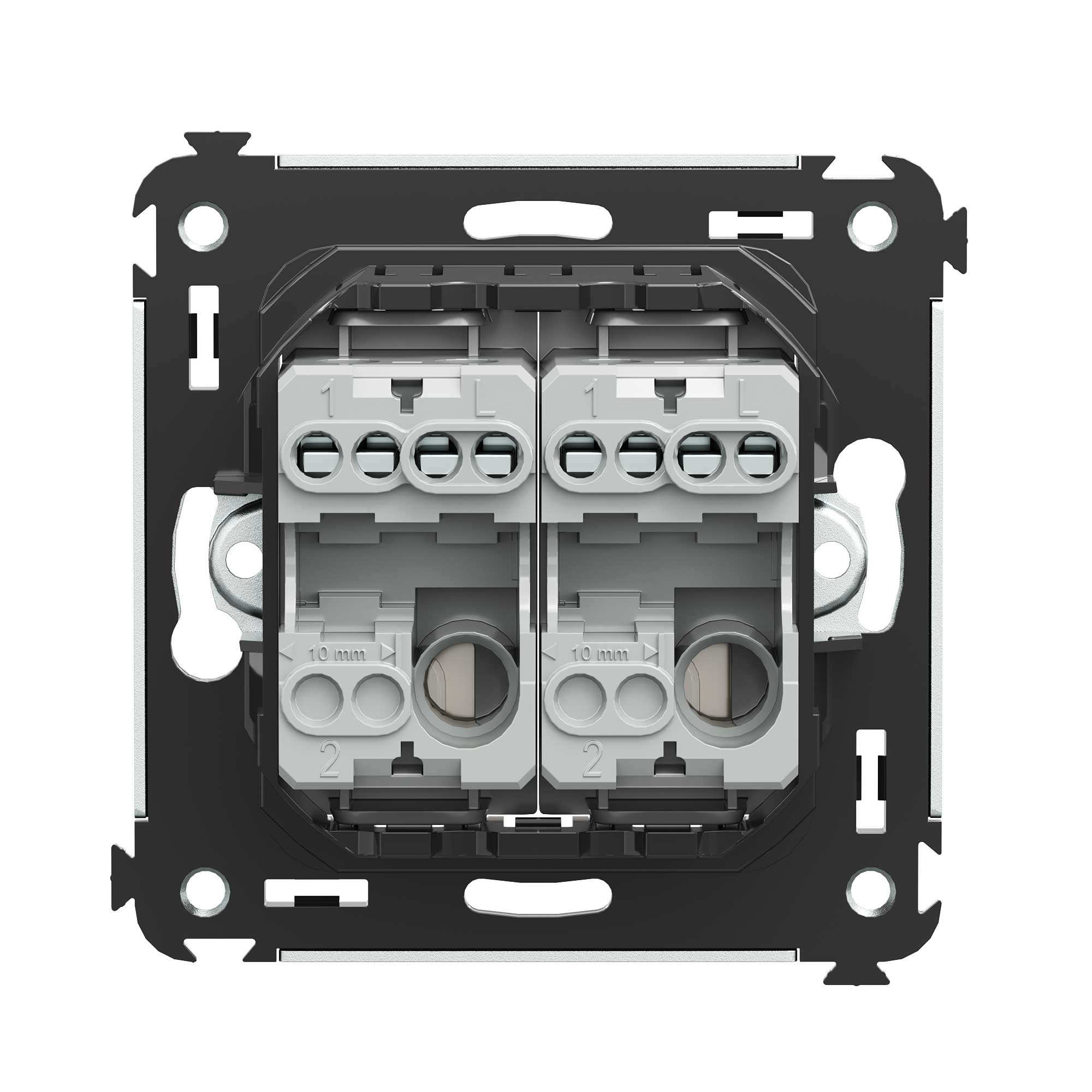 Двухклавишный выключатель ДКС применяется для того, чтобы из одной точки управлять двумя контурами освещения. Выключатель предназначен для скрытого монтажа в стену, номинальное напряжение – 230 В, номинальный ток – 16 А.