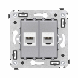 Компьютерная розетка двойная используется для подключения компьютерной техники и соединения с патч-панелью, предназначена для скрытого монтажа в стену, поставляется в комплекте с суппортом. Розетка RJ-45 категории 6 может использоваться для организации сетей с частотой до 250 МГц и передавать данные на большие расстояния. Материал розетки – металл, термопласт. Пластиковые детали изделия выполнены в цвете "Закаленная сталь".