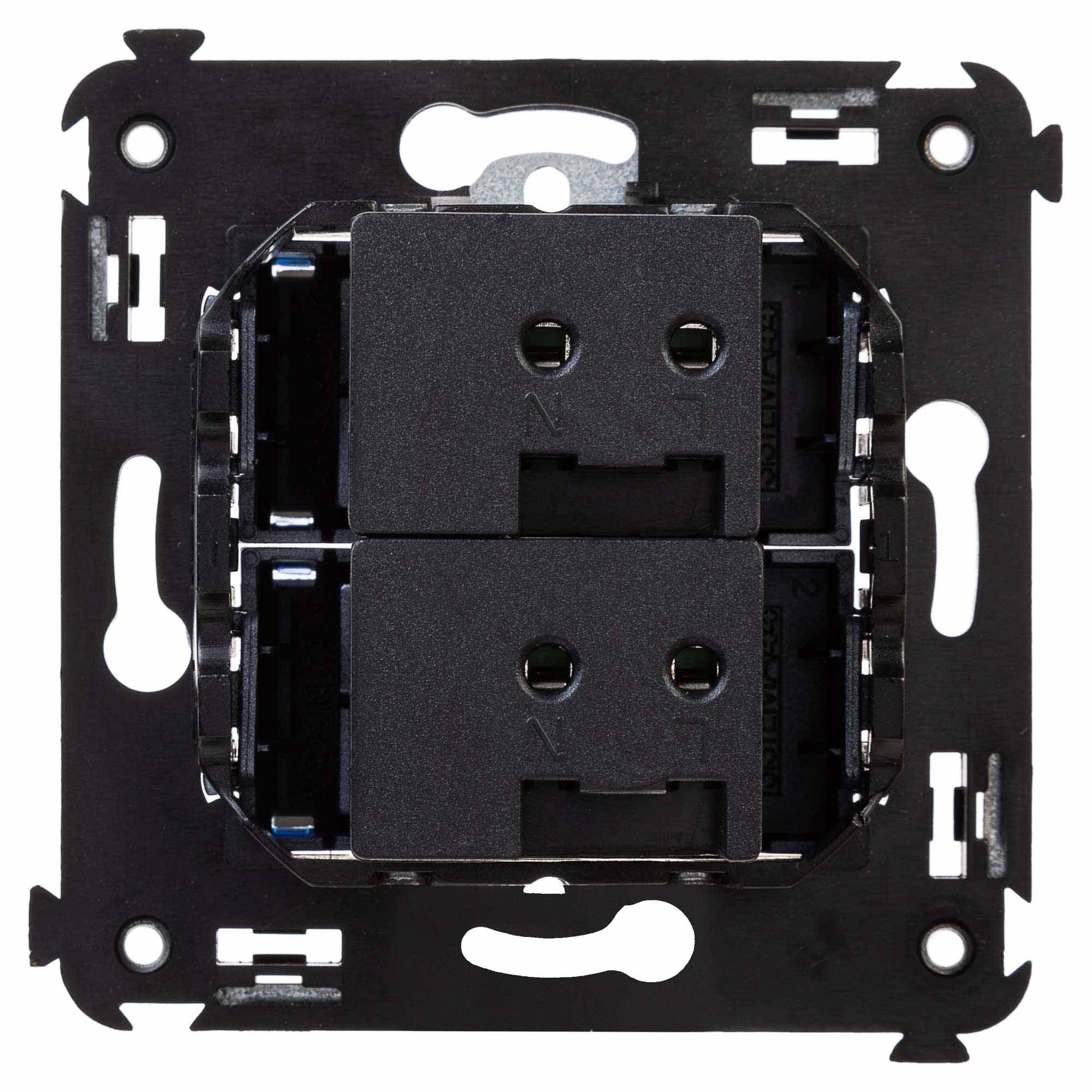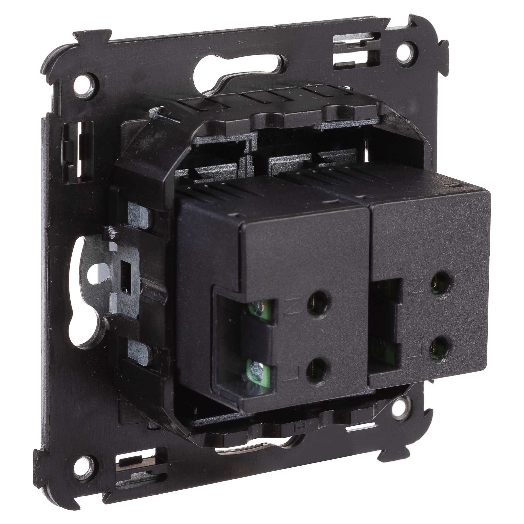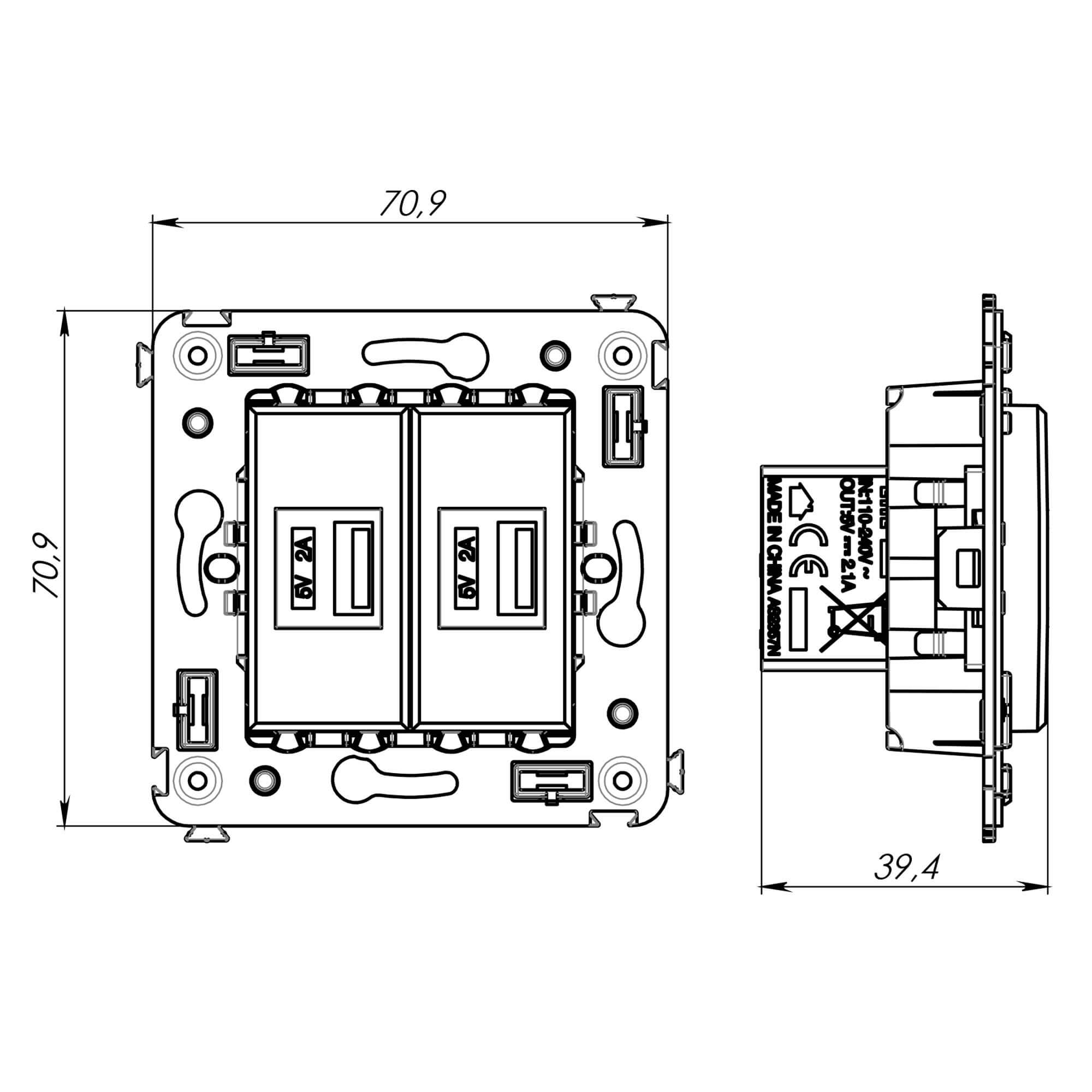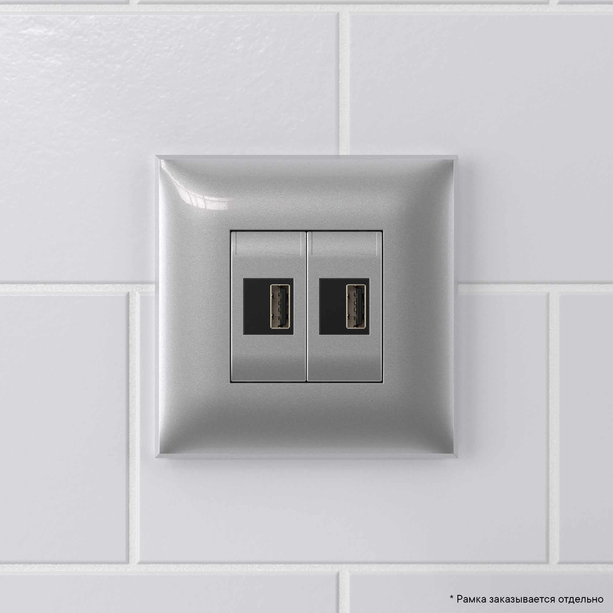 USB зарядное устройство в стену. Назначение: Назначение: для монтажа в подрозеточные коробки глубиной не менее 45 мм (код 59301); используется для подзарядки электронных гаджетов. Характеристики: винтовые зажимы; номинальное напряжение – 220 В; частота – 50–60 Гц; напряжение на выходе – 5 В; номинальный ток на каждом выходе - 2,1 А. Кол-во модулей: 2. Цвет: Закаленная сталь". Производитель оставляет за собой право вносить во внешний вид изделия изменения, которые не влияют на его функционал, безопасность и надежность.