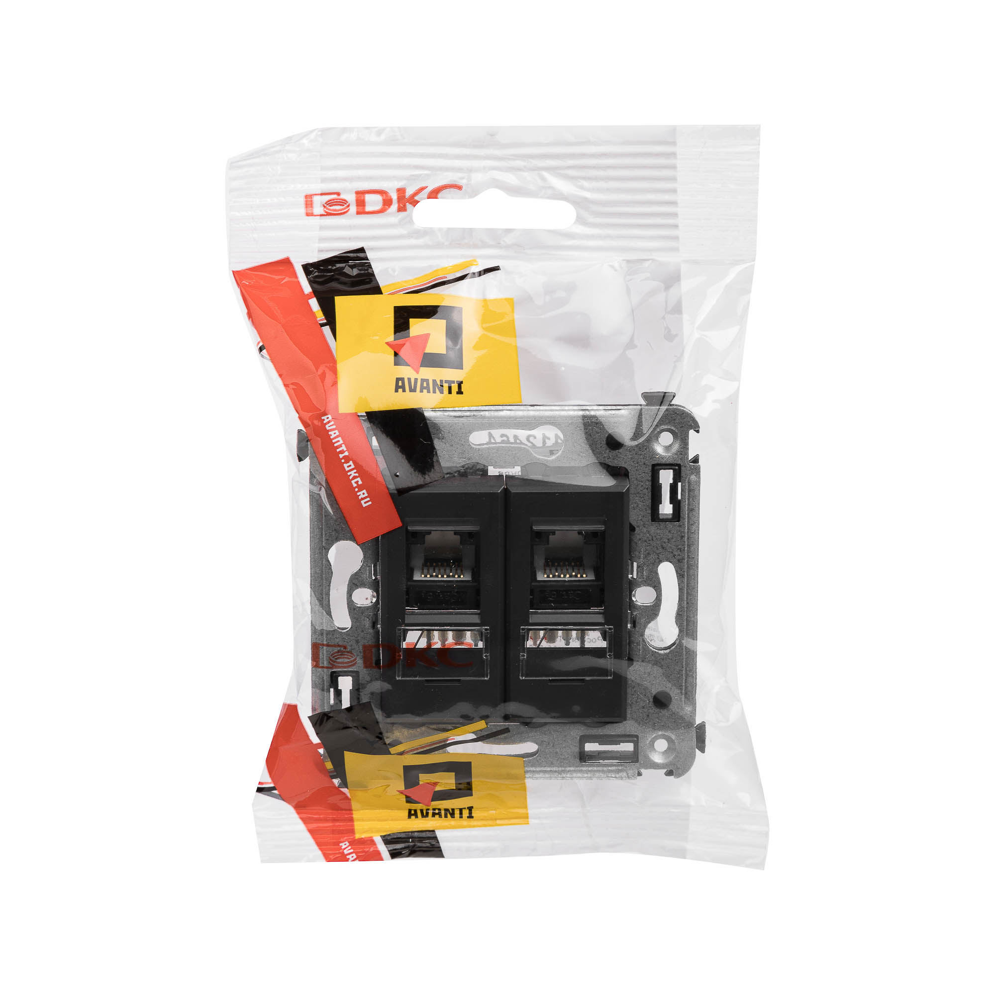 Компьютерная розетка RJ-45 в стену, кат.5e двойная, "Avanti", "Черный матовый"