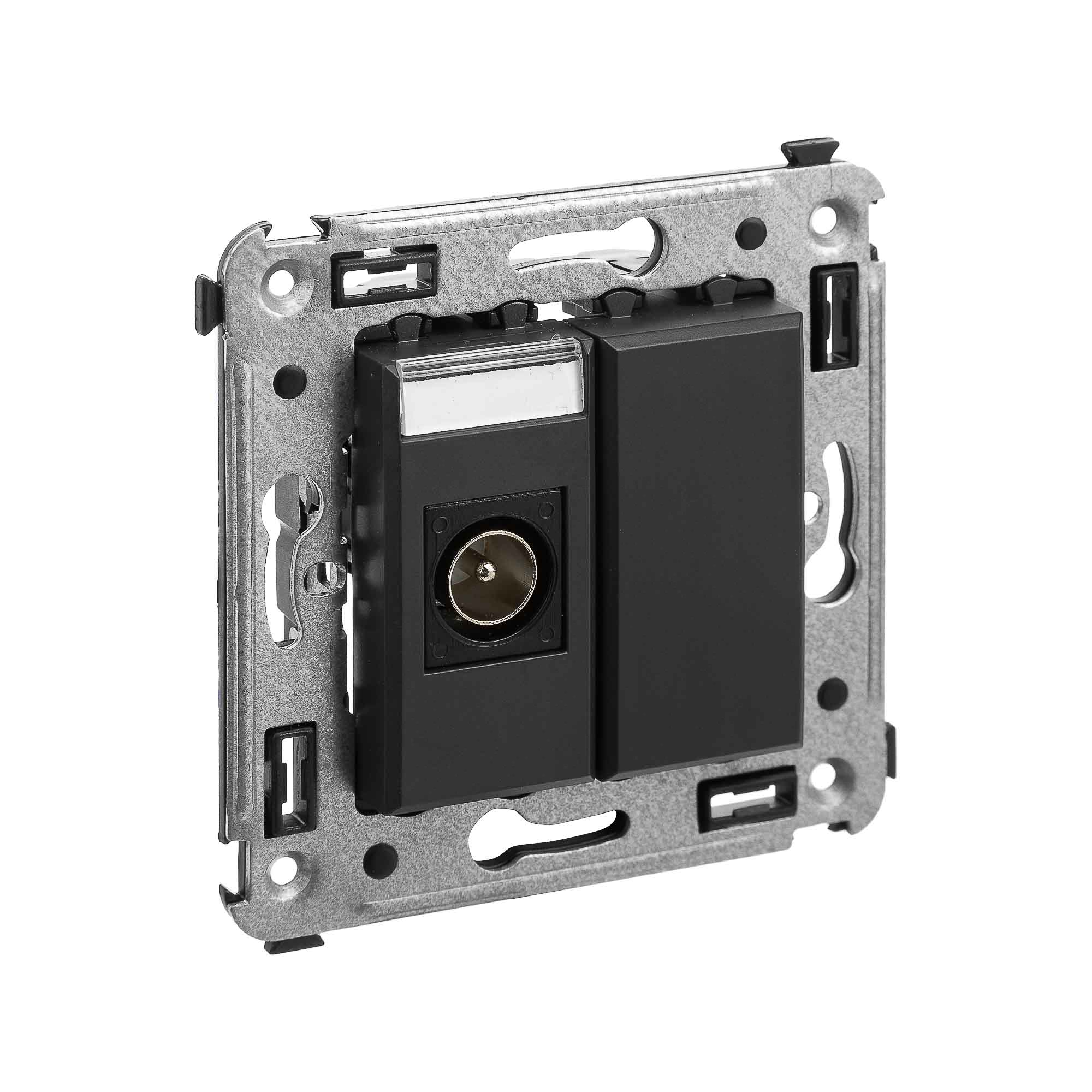 Розетка TV одиночная в стену, Avanti, черный матовый