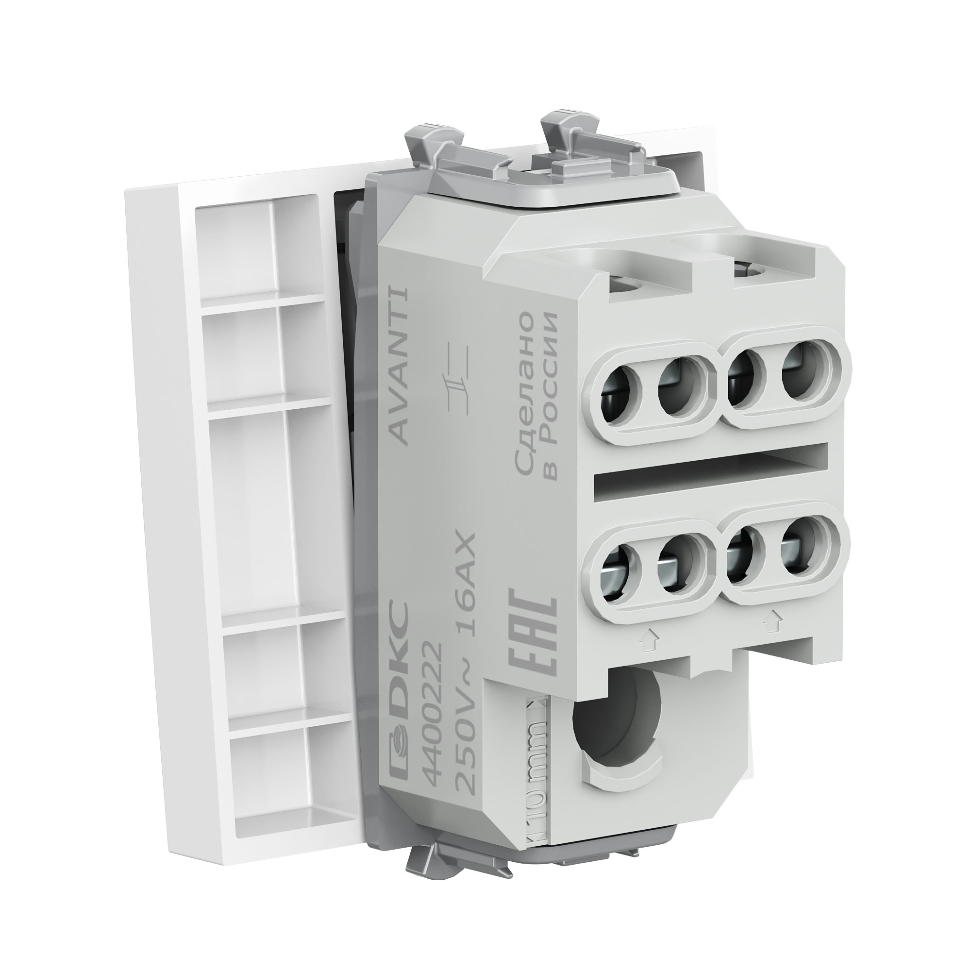 Выключатель двухполюсный одноклавишный модульный, Avanti, белое облако, 2 модуля