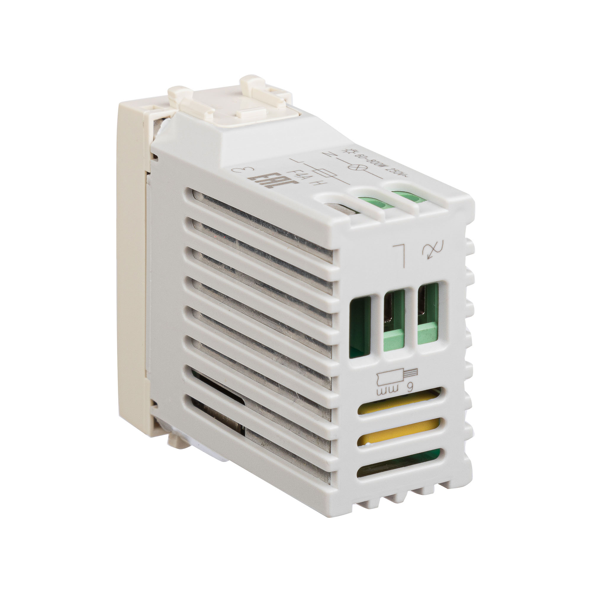 Диммер поворотный модульный. Предназначен для монтажа в систему кабельных коробов «In-liner Front» и систему организации рабочих мест «Сотто» (Sotto) (алюминиевые кабель-каналы, колонны, башенки и лючки) при помощи рамок-суппортов и каркасов «Avanti» (код 4400912 и т. д.). Используется для управления освещением помещения. Регулирование 60–800 Вт для ламп накаливания и галогенных ламп. Диаметр отверстий для ввода кабелей — 3 мм; винтовые зажимы; шаблон для зачистки кабеля — 11 мм; встроенная подсветка. Фиксация в подрозеточные коробки глубиной не менее 45 мм при помощи каркаса с лапками (код 4400802) и саморезов. 1 модуль. Цвет: «Ванильная дымка». Производитель оставляет за собой право вносить во внешний вид изделия изменения, которые не влияют на его функционал, безопасность и надёжность.