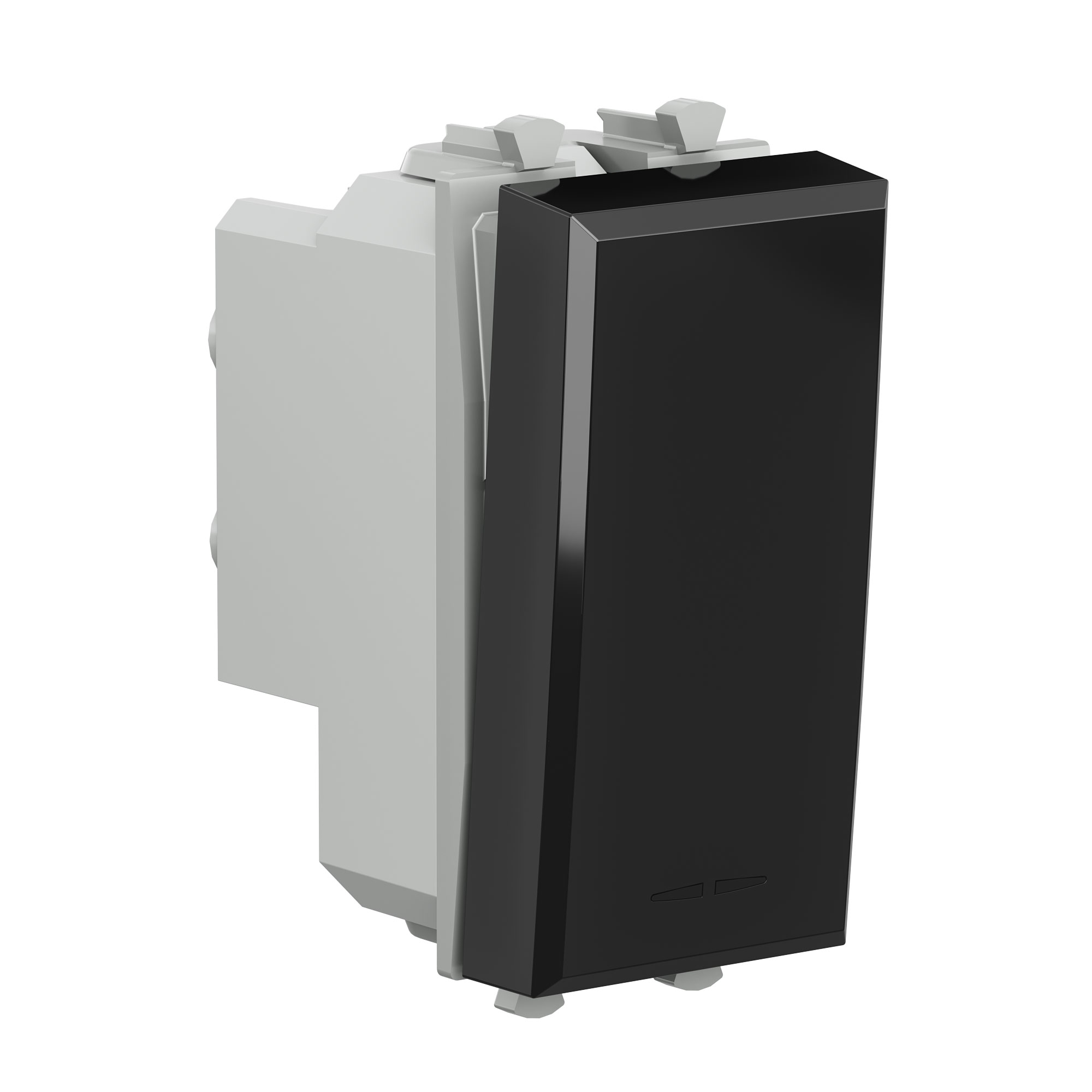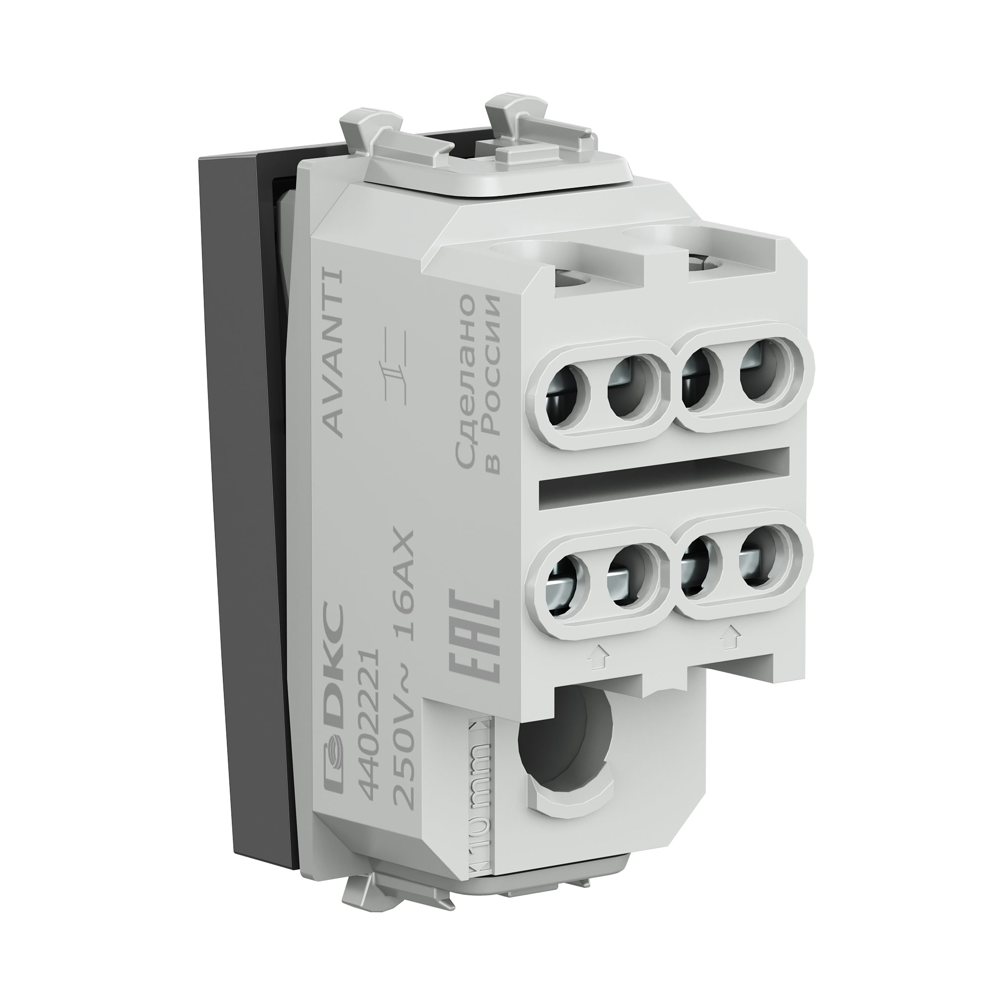 Выключатель двухполюсный одноклавишный модульный, Avanti, черный квадрат, 1 модуль