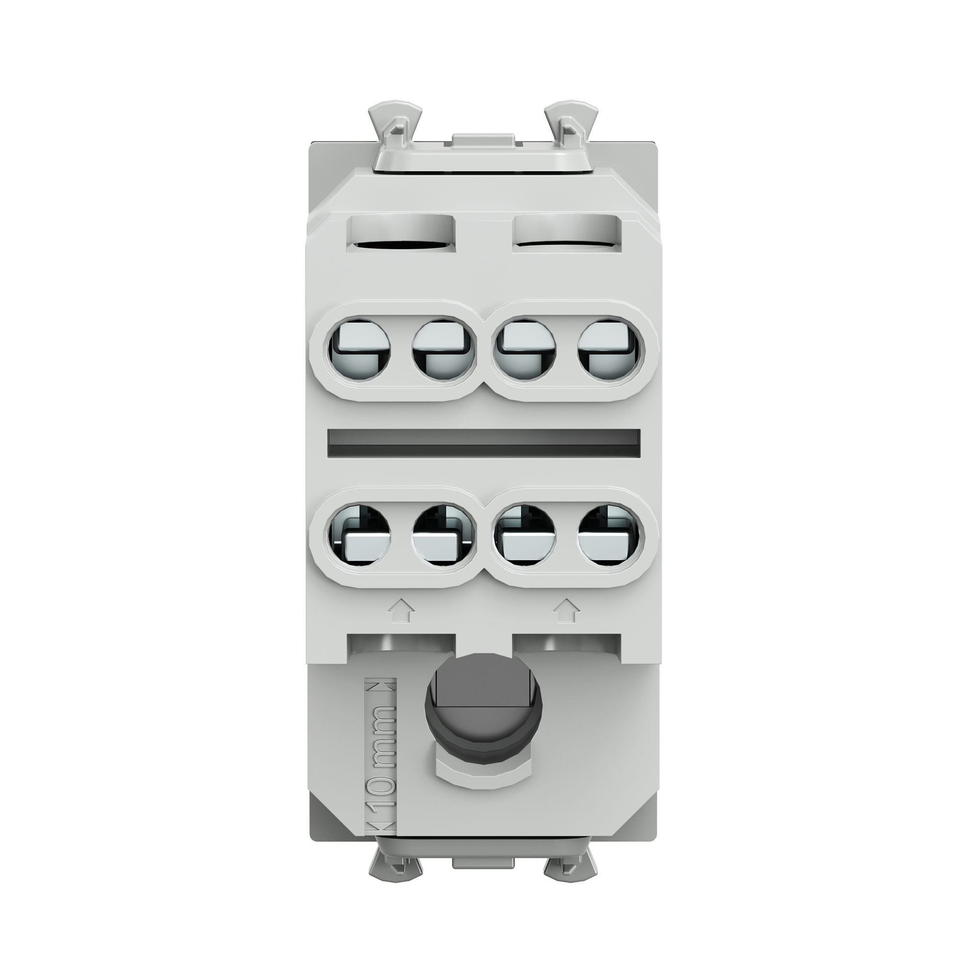 (по 2 отверстия на одну клемму); винтовые зажимы; шаблон для зачистки кабеля – 11 мм; номинальный ток – 16 A; номинальное напряжение – 230 В; фиксация в подрозеточные коробки при помощи каркаса с лапками (код 4400802) и саморезов. Цвет: "Черный квадрат".
