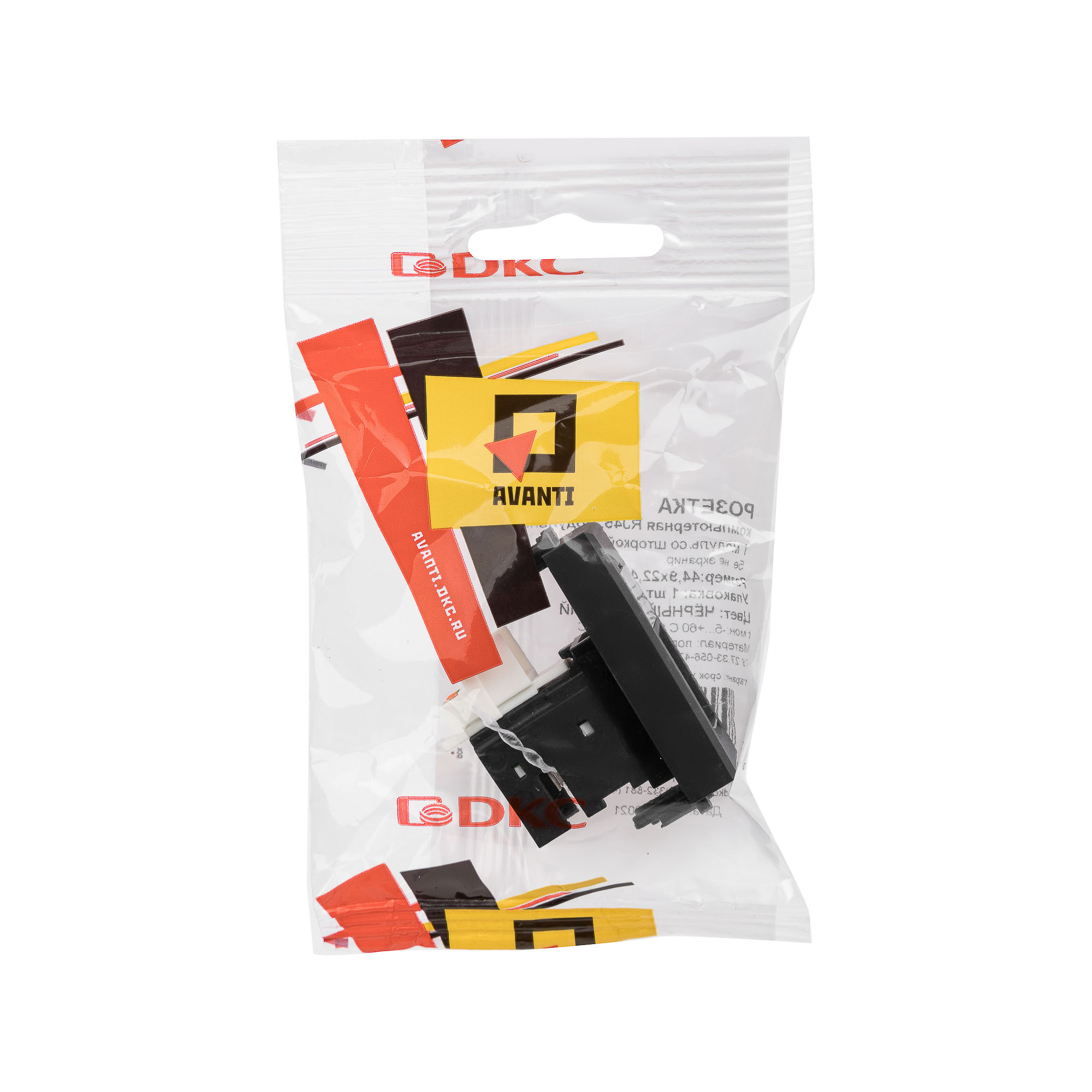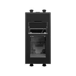 Компьютерная розетка RJ-45 модульная. Категория: 5е. Предназначена для монтажа в систему пластиковых кабельных коробов «In-liner Front» и систему организации рабочих мест «Сотто» (Sotto) (в т. ч. кабель-каналы и короба «Aero») при помощи рамок-суппортов и каркасов «Avanti» (код 4400912 и т. д.); подключение сетевого кабеля к рабочему месту. Характеристики: 8P8C; с пылезащитной шторкой; с маркировочной табличкой; в комплекте разъём Keystone. Заделка не требует инструмента. Фиксация производится в подрозеточные коробки глубиной не менее 45 мм при помощи каркаса с лапками (код 4400802) и саморезов. 1 модуль. Цвет: «Чёрный матовый»