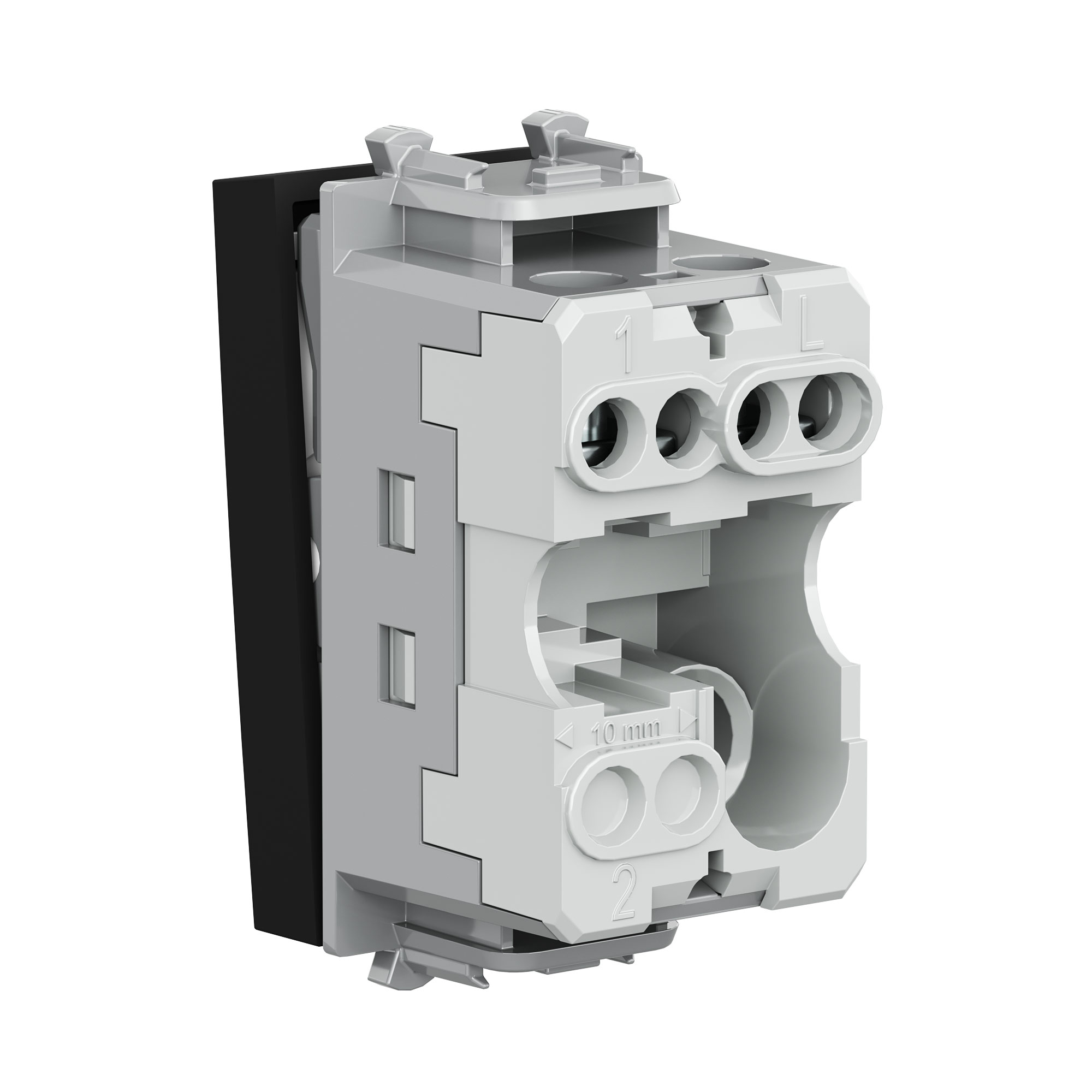 Выключатель одноклавишный однополюсный, модульный. Предназначен для монтажа в пластиковые короба системы "In-liner Front", алюминиевые кабель-каналы и колонны "Aero" при помощи рамок-суппортов и каркасов "Avanti" (код 4400912 и т.д.). Используется для включения/выключения освещения. Характеристики: диаметр отверстий для ввода кабелей – 3 мм (по 2 отверстия на одну клемму); винтовые зажимы; шаблон для зачистки кабеля – 11 мм; номинальный ток – 16 A; номинальное напряжение – 230 В. Возможна фиксация в подрозеточные коробки при помощи каркаса с лапками (код 4400802) и саморезов. 1 модуль. Цвет: "Черный матовый". Производитель оставляет за собой право вносить во внешний вид изделия изменения, которые не влияют на его функционал, безопасность и надежность.