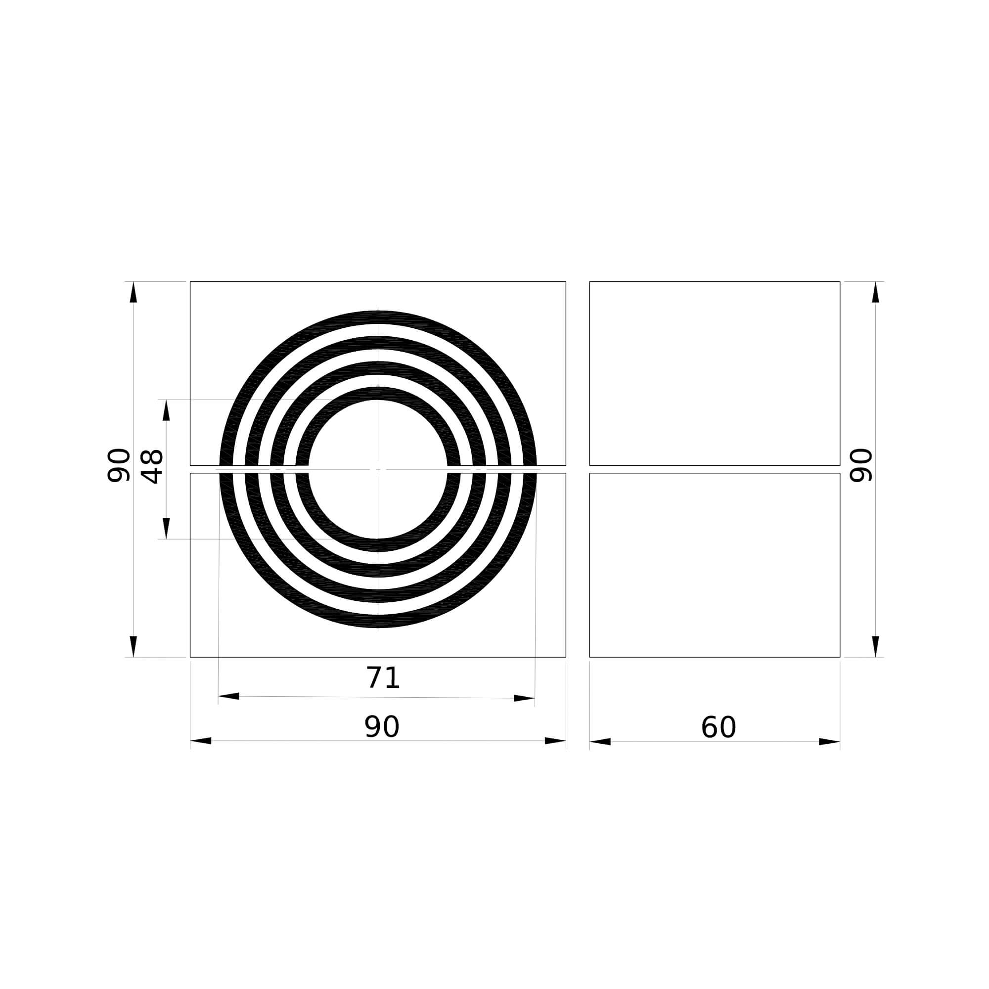 Кабельные модули устанавливаются в раму для последующей прокладки через них кабелей. Герметизируют место прохода кабеля, препятствуют распространению пожара. Сечение модуля 90×90 мм, глубина - 60 мм, диаметр прокладываемого кабеля - 48-71 мм.