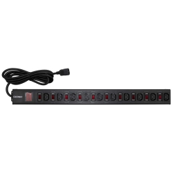 Блок распределения питания (PDU) 0U 10A с индикацией и защитой, Вых:10 С13, Вх:С14