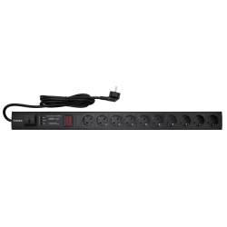 Блок распределения питания (PDU) 0U, 16A с выключателем, защитой и индикацией, Вых:10 Sсhuko, Вх: Schuko