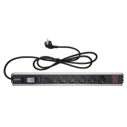 Устройство оснащено 6 разъемами Schuko, выключателем, индикатором тока, автоматом защиты 1P, а также двухметровым кабелем с вилкой Schuko.
