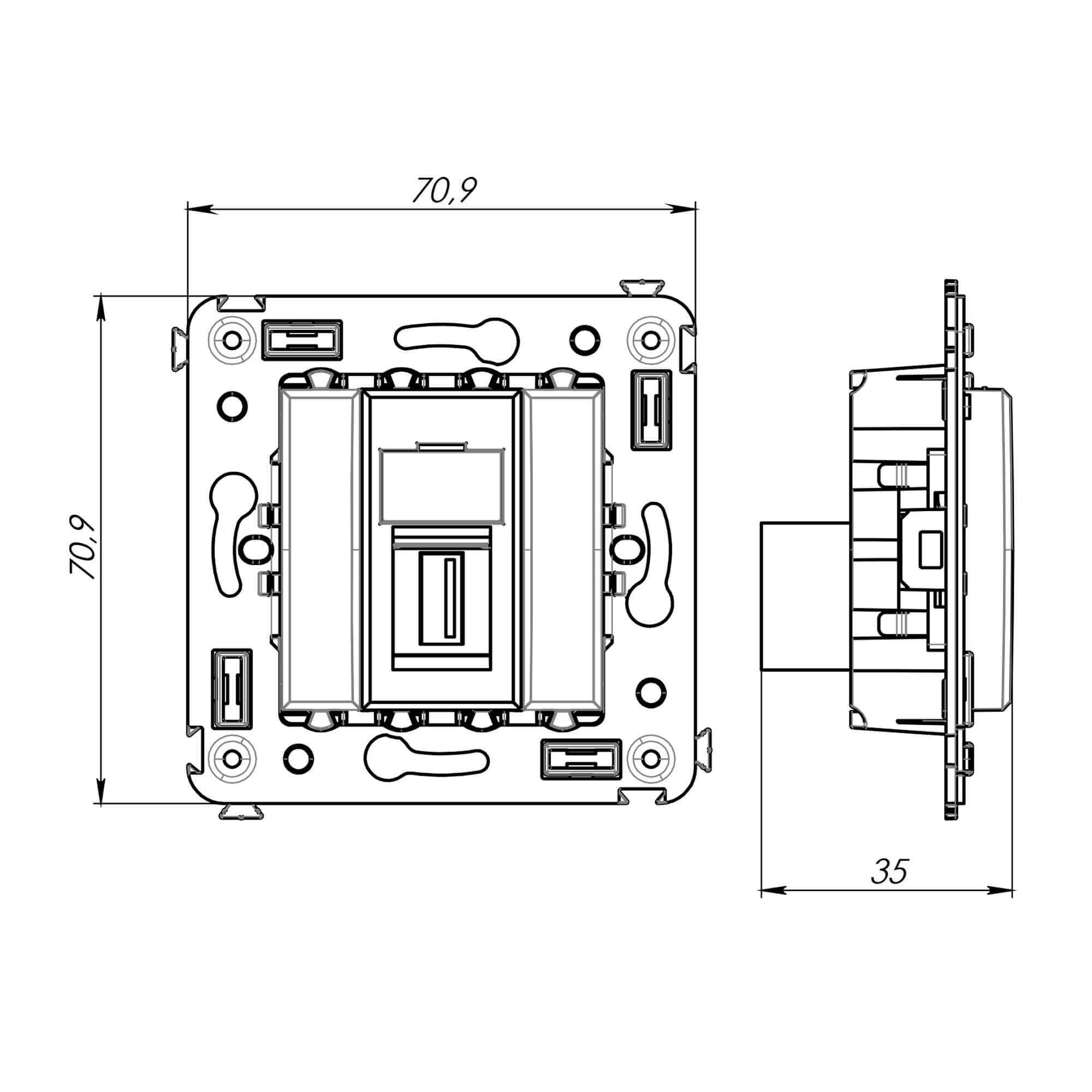 USB 3.0 розетка. Назначение: для монтажа в подрозеточные коробки глубиной не менее 45 мм (код 59301). Используется в качестве информационной розетки для передачи сигнала (подключение проекторов, мониторов и др.). Цвет: "Закаленная сталь". Производитель оставляет за собой право вносить во внешний вид изделия изменения, которые не влияют на его функционал, безопасность и надежность.