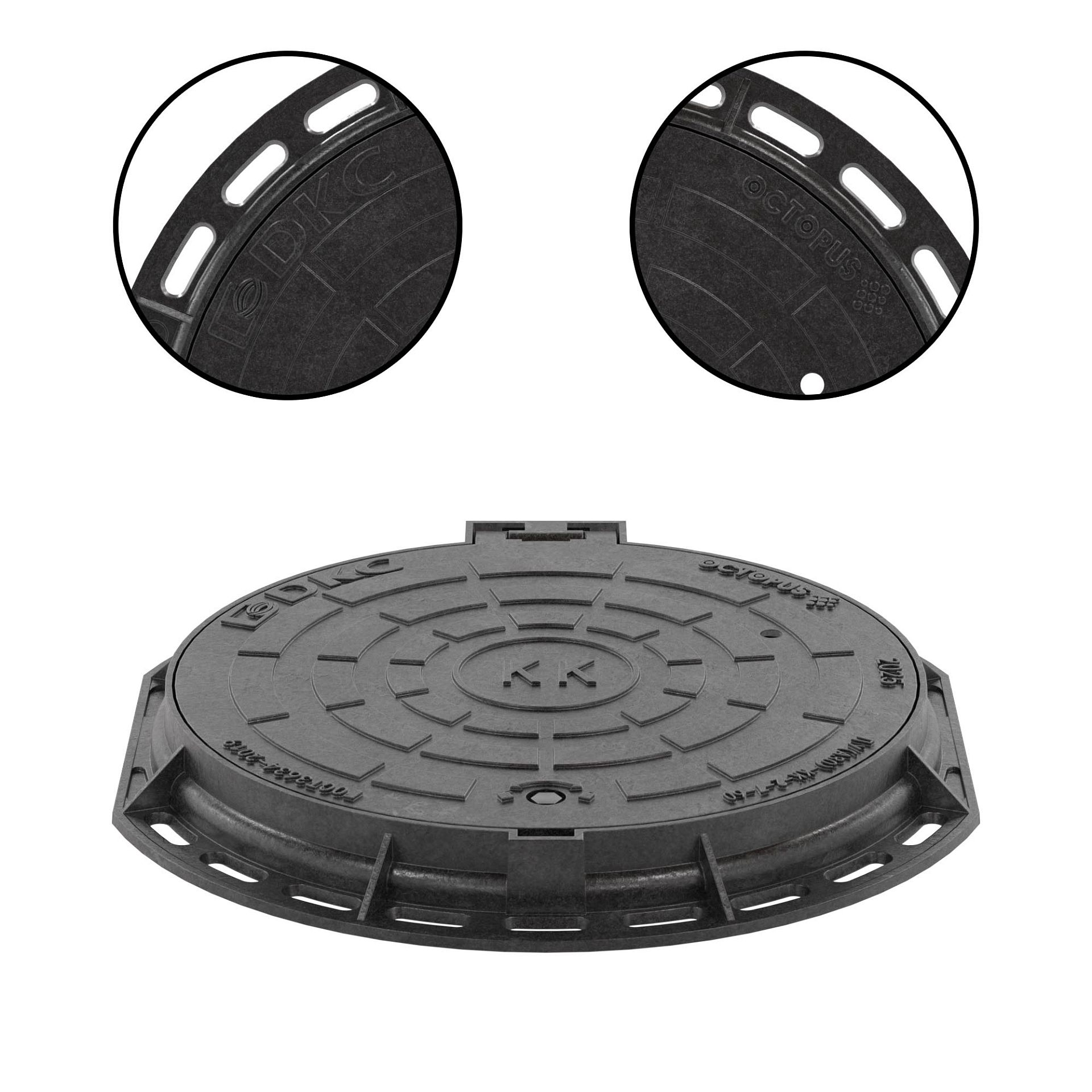 Нагрузка на люк до 3 тонн. Предназначен для обустройства колодцев кабельной канализации в зонах зеленых насаждений, на пешеходных дорожках и в лесопарковых зонах. Изготовлен из высокопрочного чугуна ВЧ-50 с шаровидным графитом, что обеспечивает устойчивость к нагрузкам и долговечность. Конструкция люка состоит из корпуса с резиновой прокладкой (РТИ-EPDM) и крышки с запирающим устройством флажкового типа, предотвращающим произвольное открытие. Крышка крепится к корпусу с помощью безболтового шарнирного механизма. Корпус имеет дополнительную опорную зону для установки антивандального запорного устройства, защищающего пространство колодца от несанкционированного доступа и попадания посторонних предметов, в зависимости от конструкции запорного устройства.