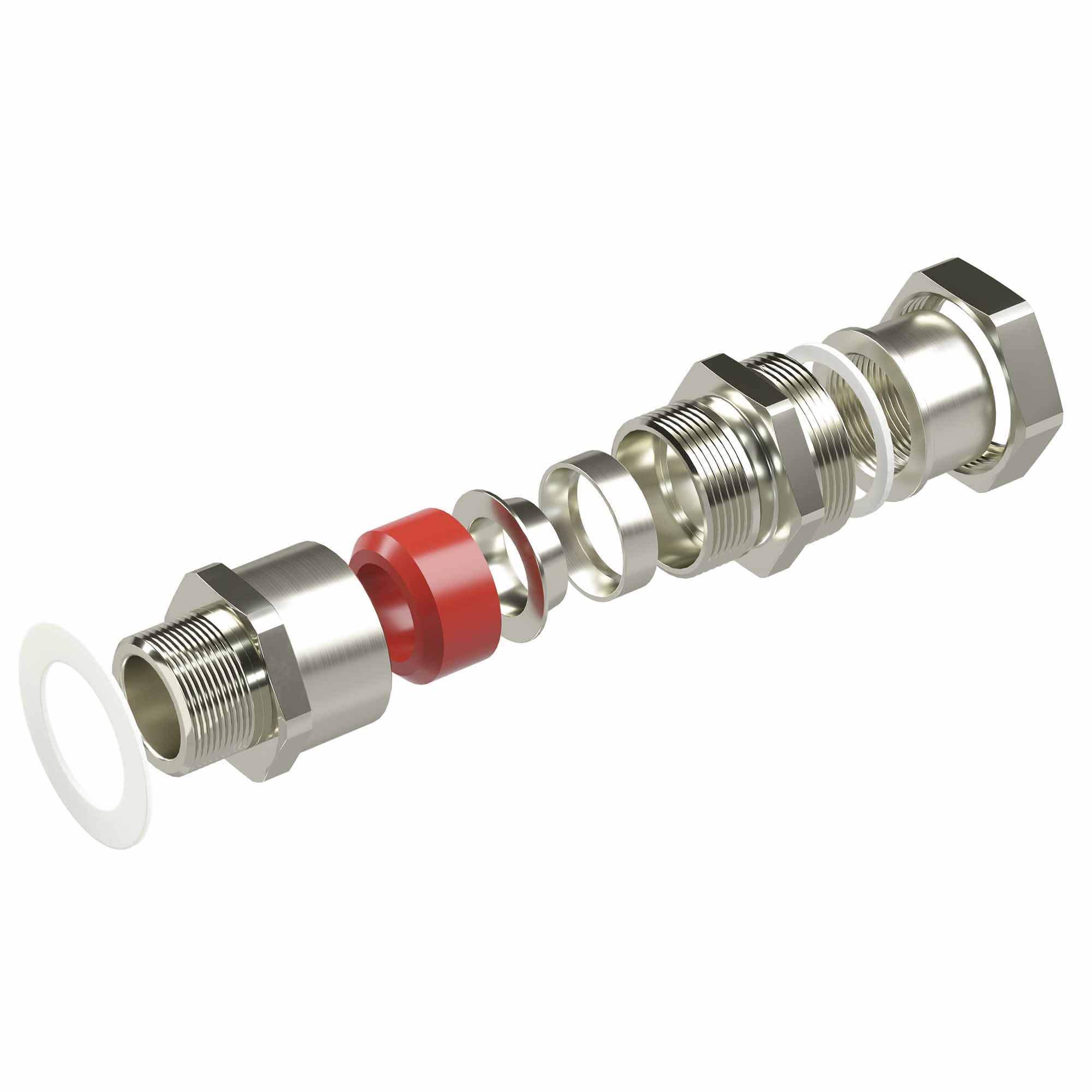 Взрывозащищенный универсальный кабельный ввод серии КАЕС для бронированного и небронированного кабеля М90х2 d:62,8-71мм. Присоединительная резьба М90х2. Никелированная латунь IP66/IP68