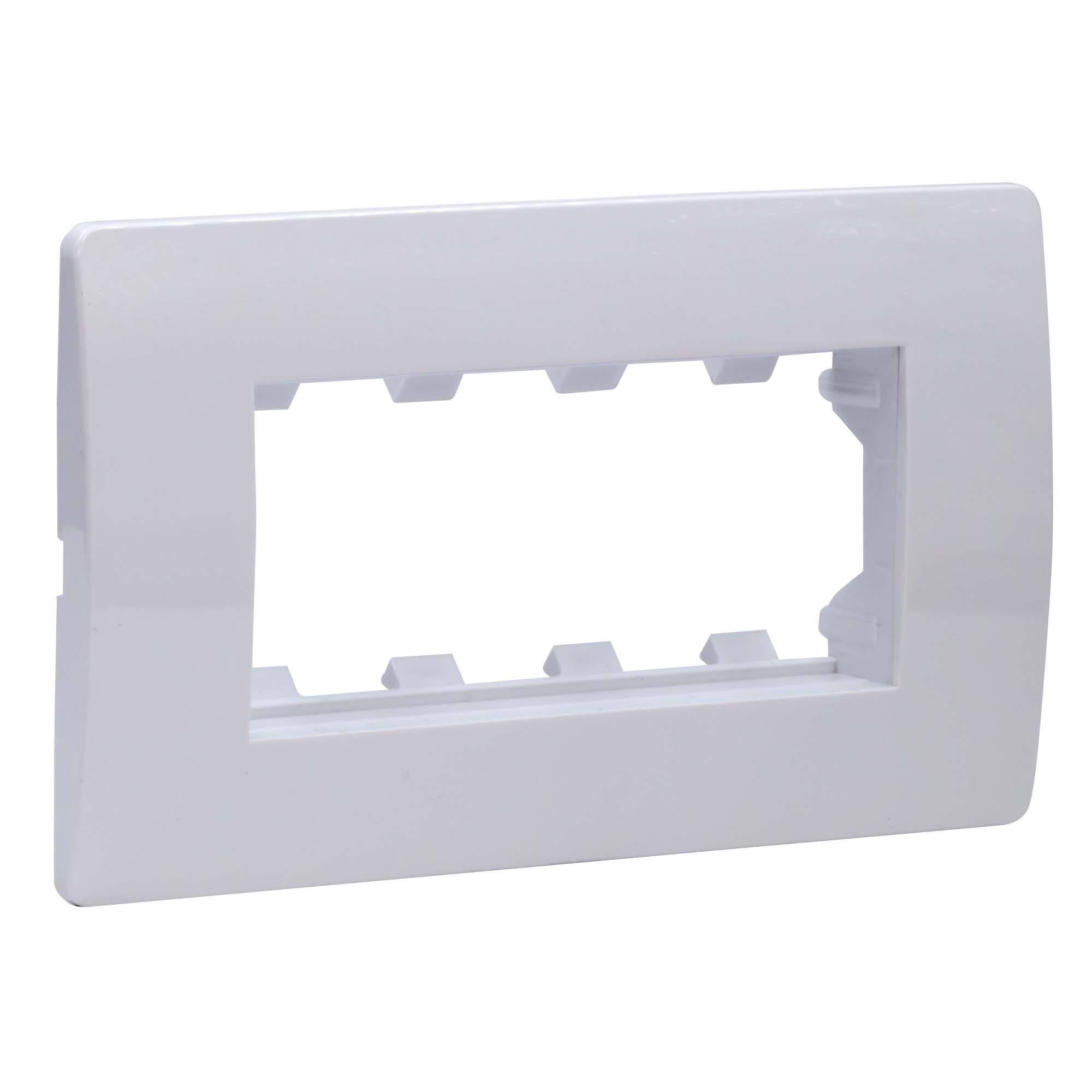 Каркас в сборе с рамками под 4 модуля электроустановочных изделий ЭУИ «Вива» (Viva). Назначение: организация рабочего места. Условия монтажа: электроустановочное изделие серии ЭУИ «Вива» (Viva) монтируется в каркас защёлкиванием; каркас в коробку монтируется саморезом; рамка на каркас — защёлкиванием. Характеристики: материал — АБС-пластик. Комплектация: каркас; рамка. Цвет белый