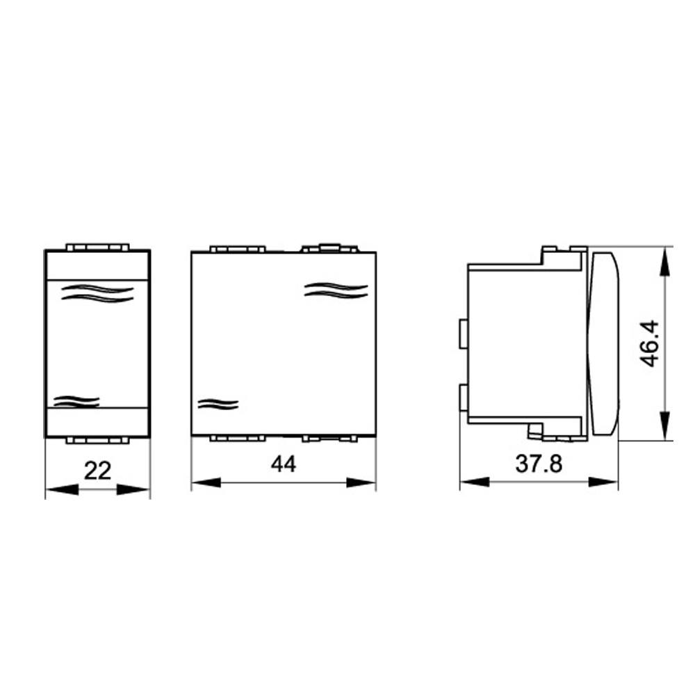 Переключатель (проходной выключатель). Назначение: включение/выключение освещения. Переключатели устанавливаются по 2 шт. на одну цепь для управления освещением из 2-х точек в коридорах, проходах, гостиничных номерах (у входной двери, изголовья кровати), проходных комнатах и т. д. Характеристики: номинальный ток − 16 А; номинальное напряжение − 250 B. Кол-во модулей: 1. Цвет: белый
