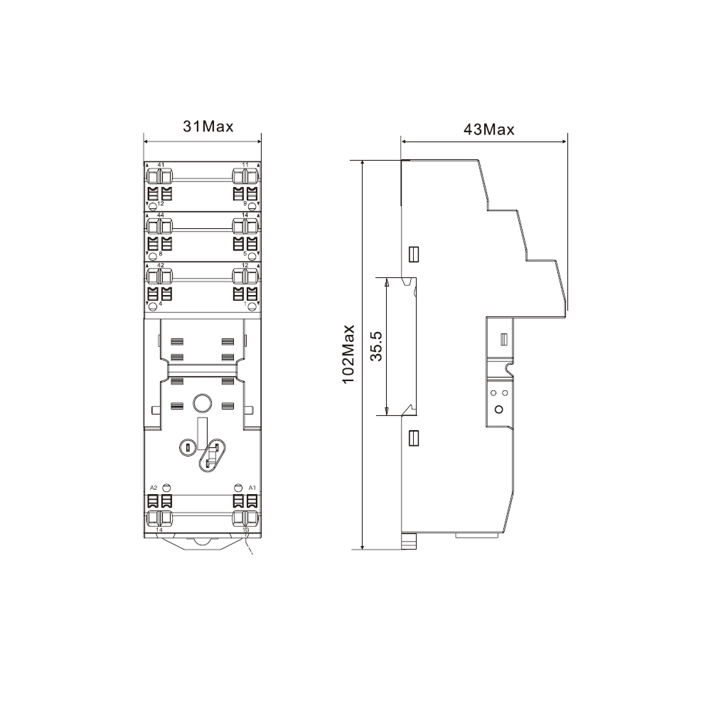 Колодка c клеммами push-in. Установка на DIN-рейку. Для реле серии IR-W2CO.