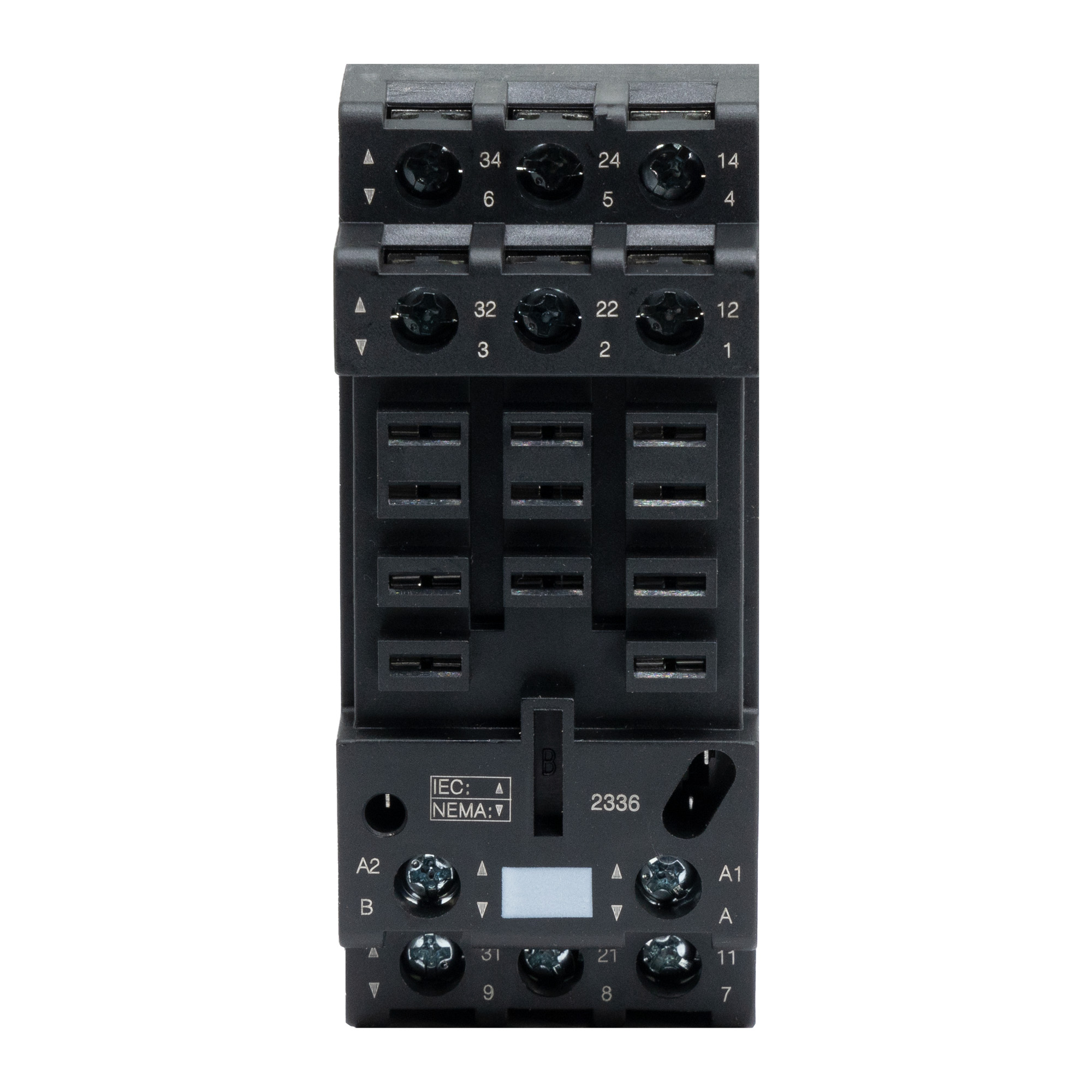 Колодка c винтовыми клеммами. Уставновка на Din-рейку. Для силового реле на 3 контактные группы серии IR. Колодка низкопрофильная 2-х уровневая.