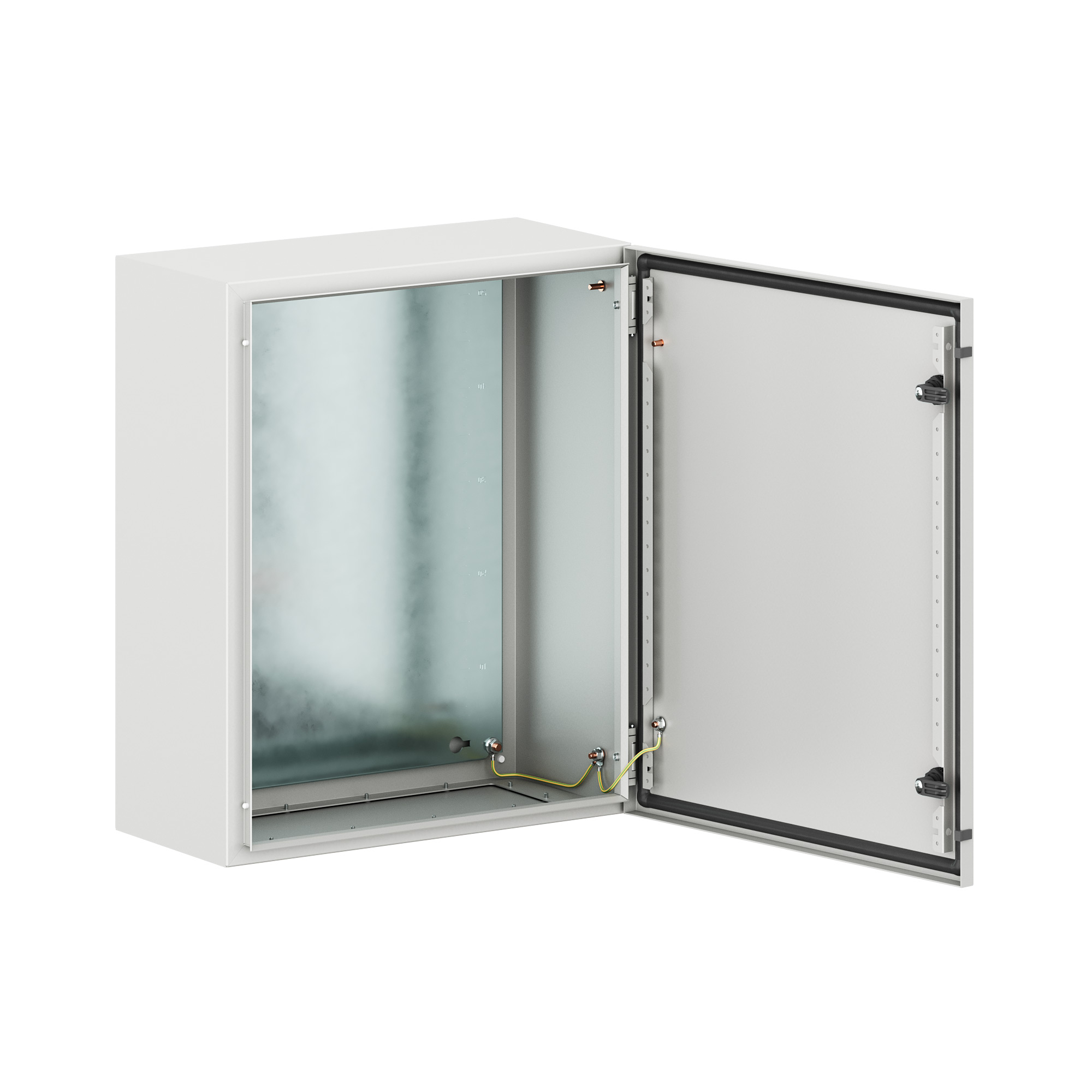 Навесные корпуса STE предназначены для систем автоматизации и распределения электроэнергии. Корпус, дверь, фланец STE изготавливаются из стали толщиной 1,5 мм с атмосферостойким порошковым покрытием, цвет RAL7035. Монтажная плата - из оцинкованной стали 1,8 мм. Корпуса выполнены по технологии сварки из единого листа металла, что обеспечивает высокую нагрузочную способность и защиту от вибраций. Степень защиты IP66, ударопрочность IK10, сейсмостойкость 9 баллов по шкале MSK-64, климатическое исполнение УХЛ1, ОМ2, ОМ3, группа горючести Г1. Комплект поставки: корпус, дверь реверсивная, монтажная плата, дверные рейки, поворотный замок 2 шт., сплошной фланец для ввода кабеля 1 шт., комплект заземления с проводами заземления. Габариты 600x500x250 (ШхВхГ) мм.
