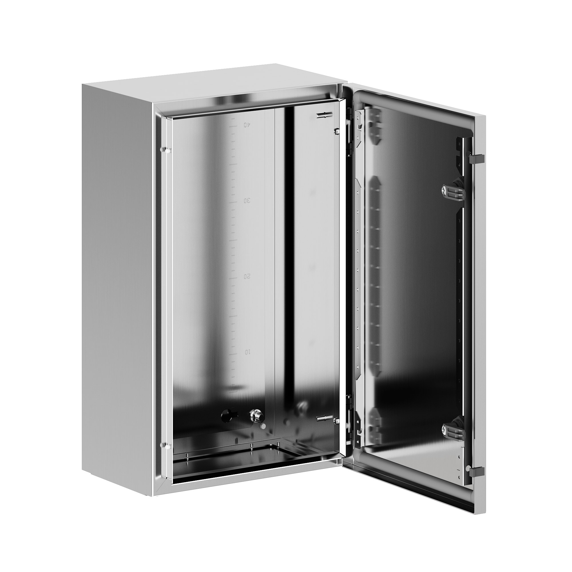 Навесные корпуса STH предназначены для систем автоматизации и распределения электроэнергии, эксплуатирующихся в коррозионно-активных средах - области с высокой влажностью, соляной и морской туман, химически агрессивные среды, открытые пространства с высокой концентрацией загрязняющих веществ. Корпус, дверь, фланец изготавливаются из нержавеющей стали AISI 304 (1.4301) толщиной 1,5 мм. Литой уплотнитель двери и фланца - вспененный силикон. Монтажная плата - из оцинкованной стали толщиной 1,8 мм. Степень защиты IP66, ударопрочность IK10, сейсмостойкость 9 баллов по шкале MSK-64, климатическое исполнение УХЛ1, ОМ2, ОМ3, группа горючести НГ. Комплект поставки: корпус, дверь реверсивная, монтажная плата, дверные рейки, поворотный замок 2 шт., сплошной фланец для ввода кабеля 1 шт., комплект заземления без проводов. Габариты 500x300x200 (ВхШхГ) мм.