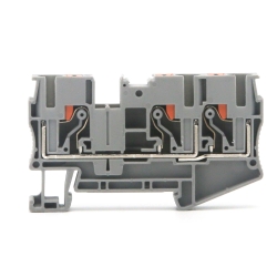 Проходная клемма с зажимом Push-in предназначена для соединения трех проводников, а за счет кнопки-толкателя обеспечивается защита от ошибок при монтаже и случайного прикосновения. Монтаж осуществляется на DIN-рейку OMEGA. Температура эксплуатации от -40 до +105°C. Корпус выполнен из ПА 6.6 с классом горючести V0 UL-94.