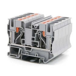 Проходная клемма с зажимом Push-in предназначена для соединения двух проводников, а за счет кнопки-толкателя обеспечивается защита от ошибок при монтаже и случайного прикосновения. Монтаж осуществляется на DIN-рейку OMEGA. Температура эксплуатации от -40 до +105оС. Корпус выполнен из ПА 6.6 с классом горючести V0 UL-94.