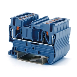 Проходная клемма с зажимом Push-in предназначена для соединения двух проводников, а за счет кнопки-толкателя обеспечивается защита от ошибок при монтаже и случайного прикосновения. Монтаж осуществляется на DIN-рейку OMEGA. Температура эксплуатации от -40 до +105оС. Корпус выполнен из ПА 6.6 с классом горючести V0 UL-94. Синий цвет, 2 точки подключения, 2.5 мм². 2 канала для вставных перемычек. Габариты (В×Ш×Г) 36,9×48,7×5,2 мм.